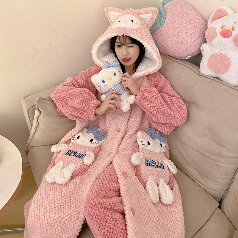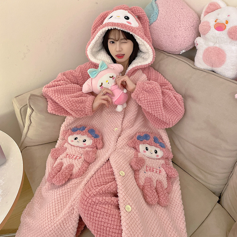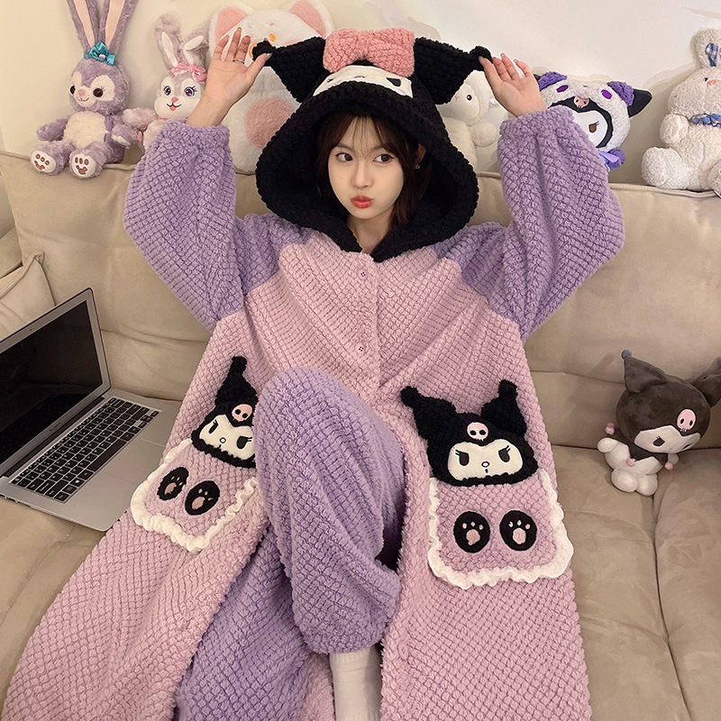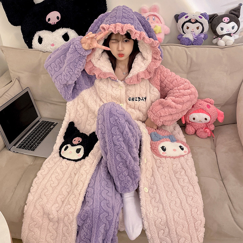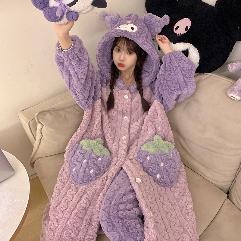 나이트가운 여성의 가을과 겨울 산호 양털 두꺼운 소녀의 귀여운 파자마 산리오 쿨미 플란넬 홈 옷스토어 가기