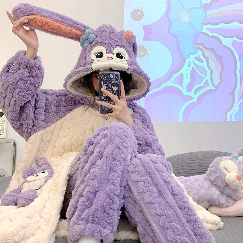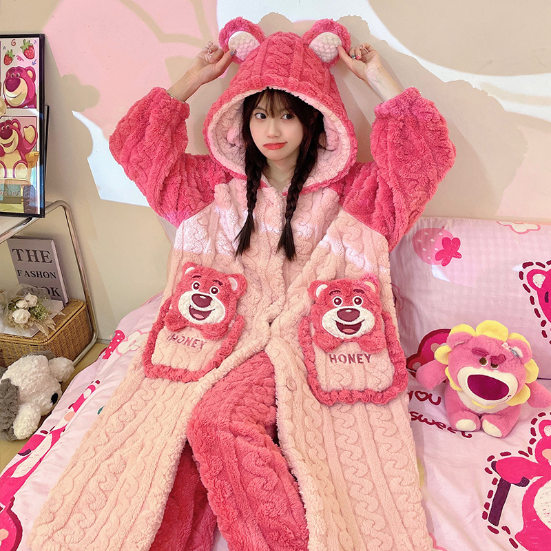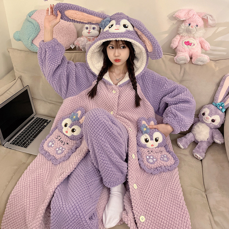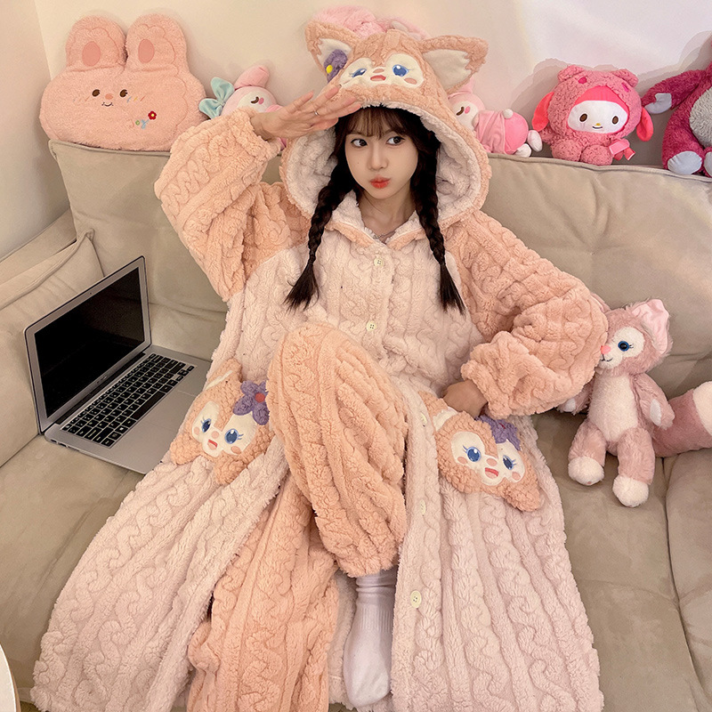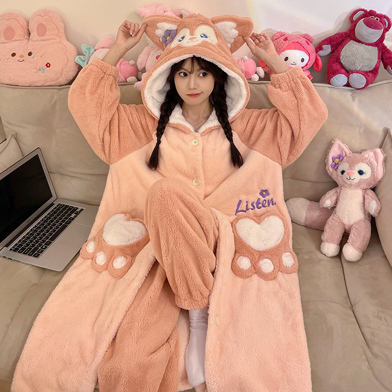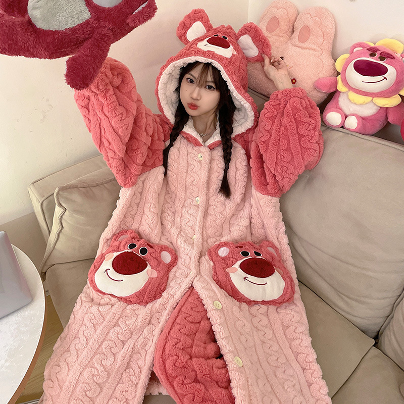 나이트가운 여성의 가을과 겨울 산호 양털 두꺼운 소녀의 귀여운 파자마 산리오 쿨미 플란넬 홈 옷스토어 가기