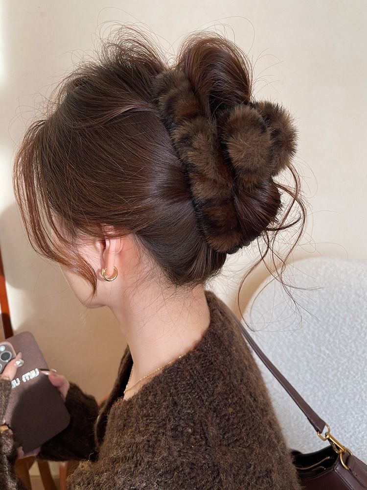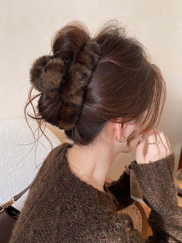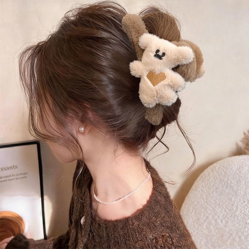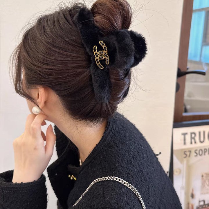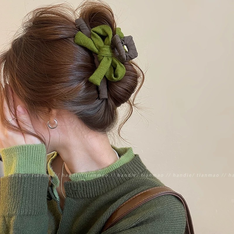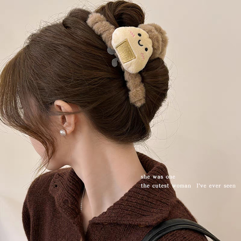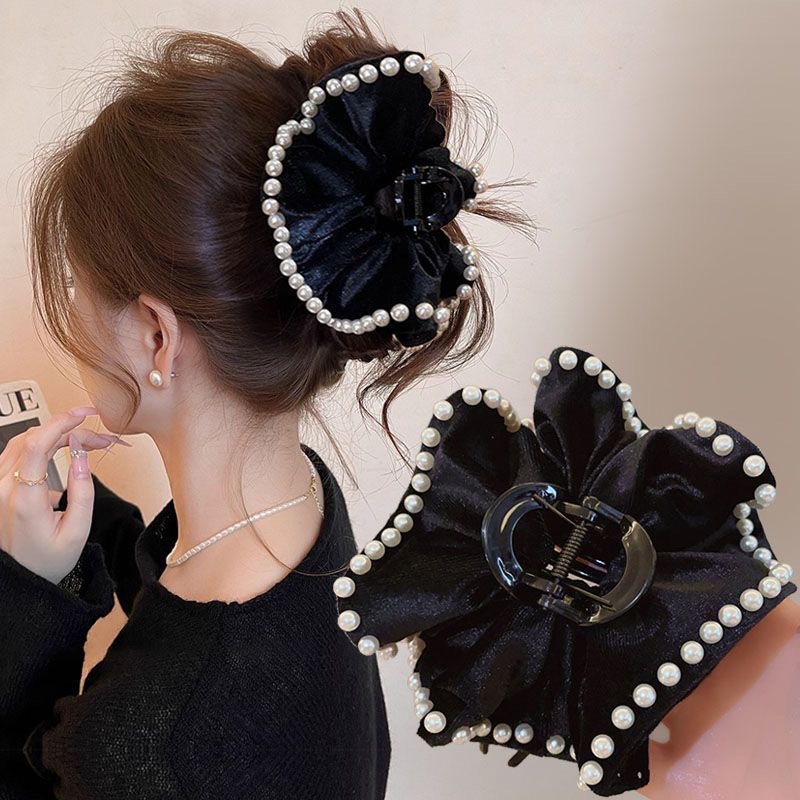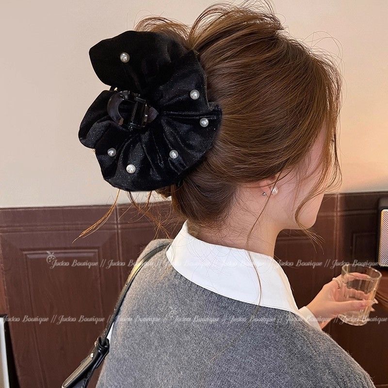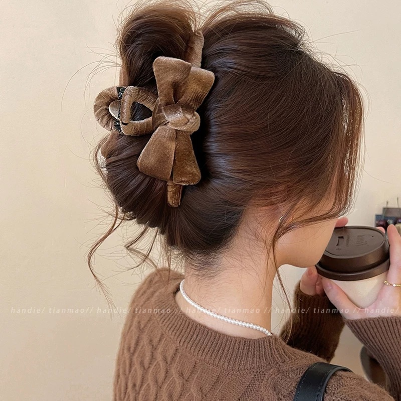 가을 겨울 리본 플러시 머리핀 대형 헤어클립 여성용 2025 신상 귀여운 뒷머리 고급스러운 샤크 클립스토어 가기