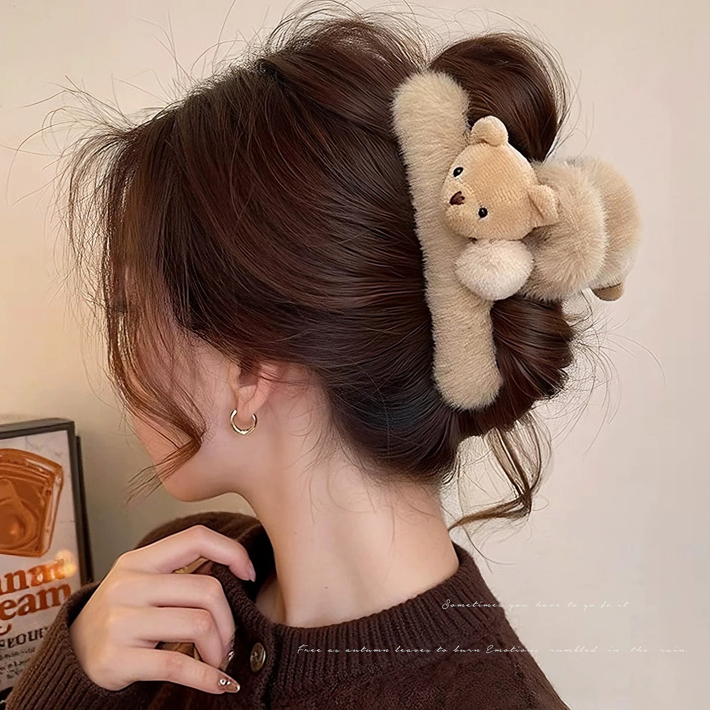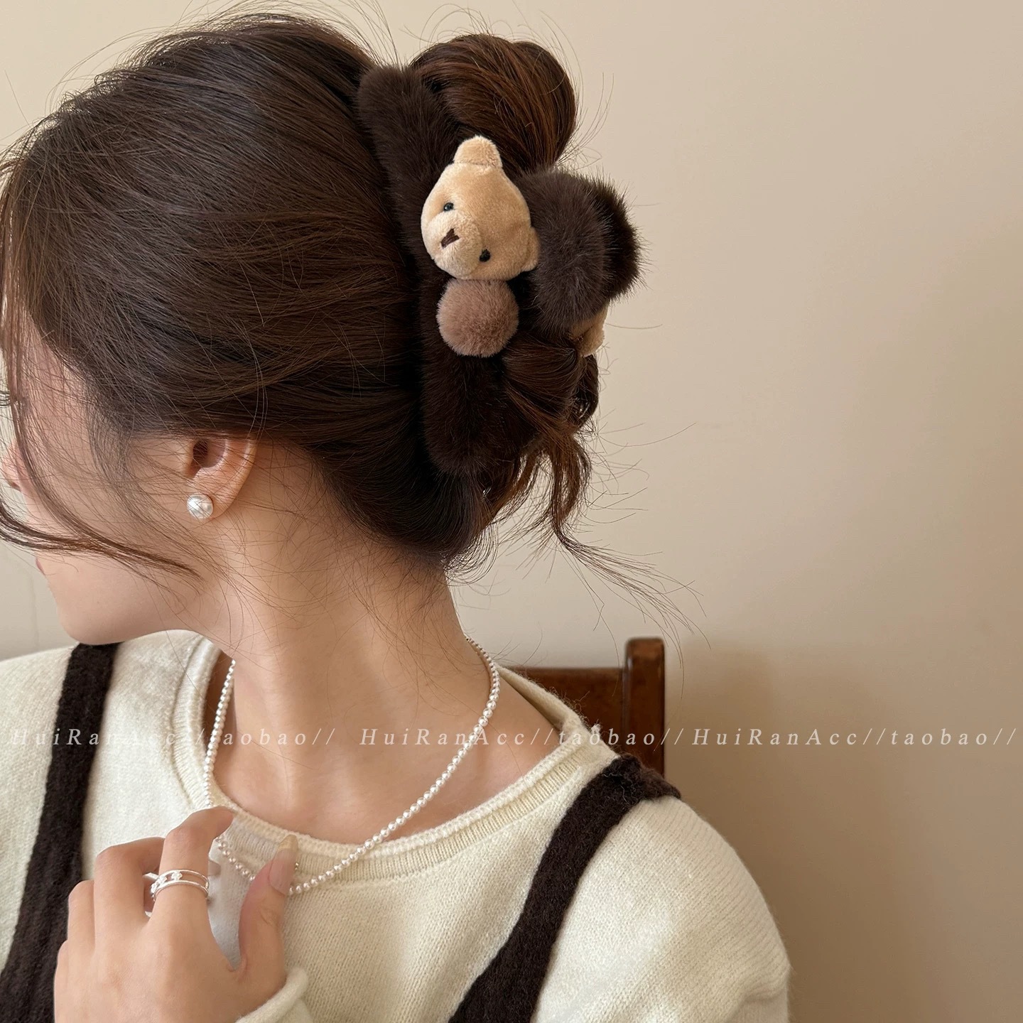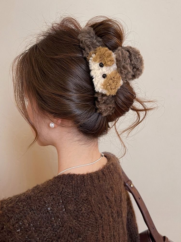 • 97 # 귀여운 곰돌이 다크 브라운 털 뭉치 헤어 클립 (약 13cm)