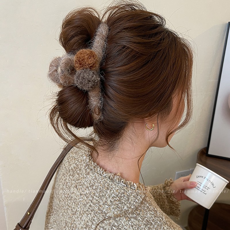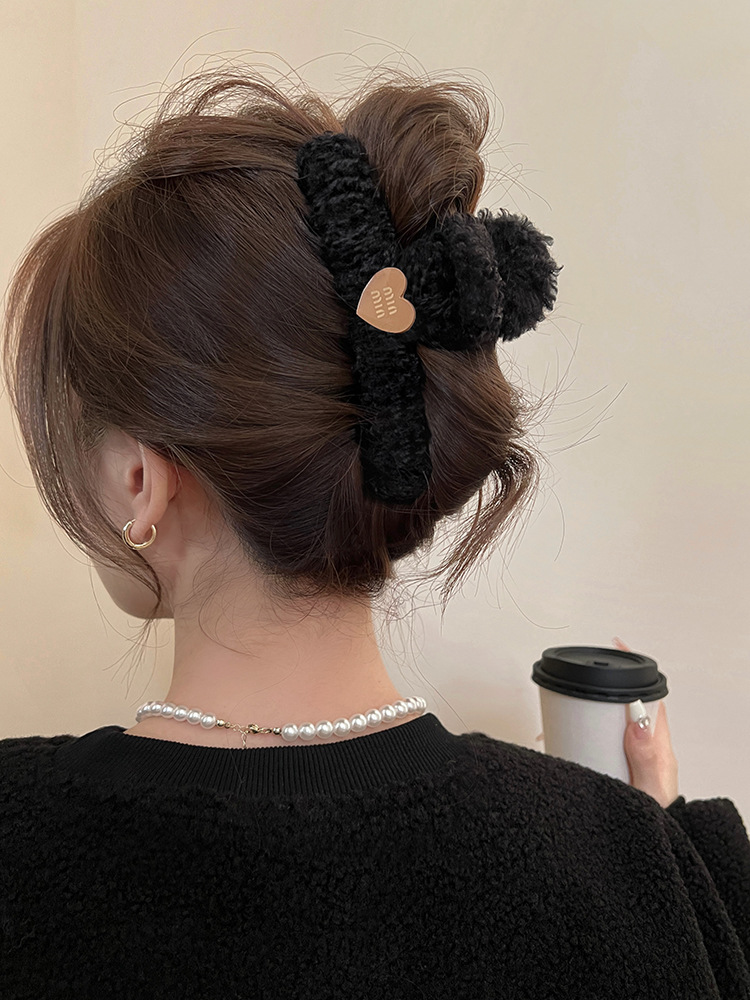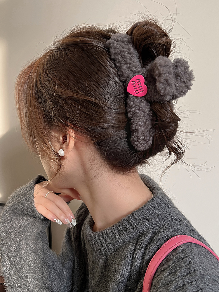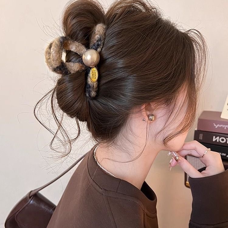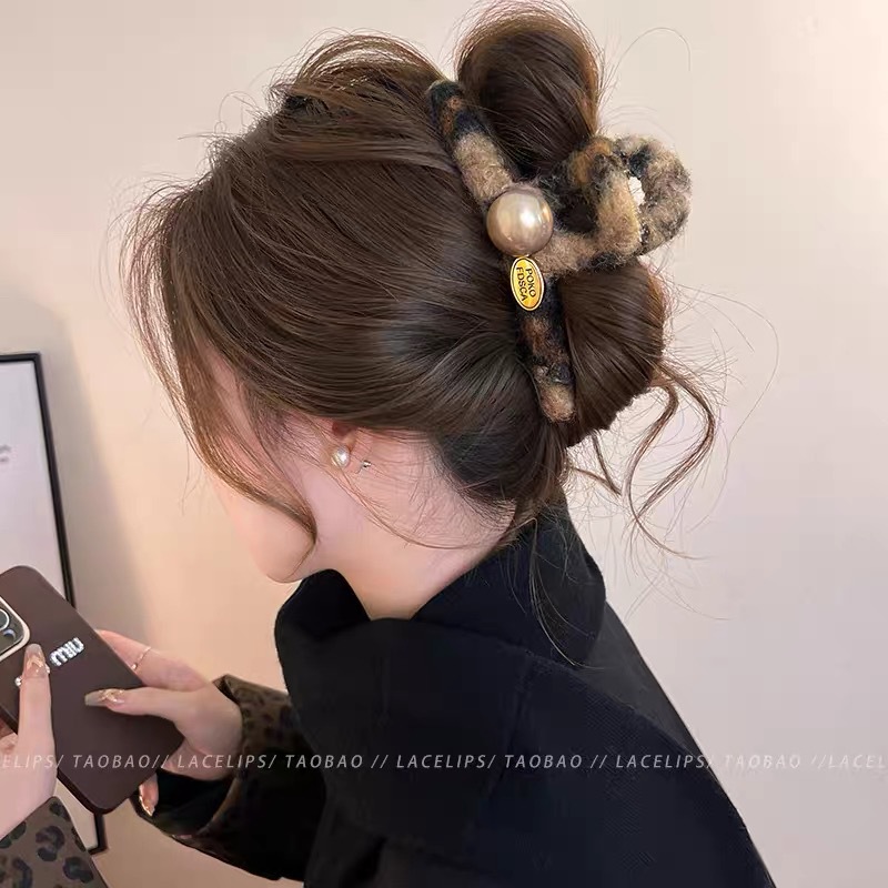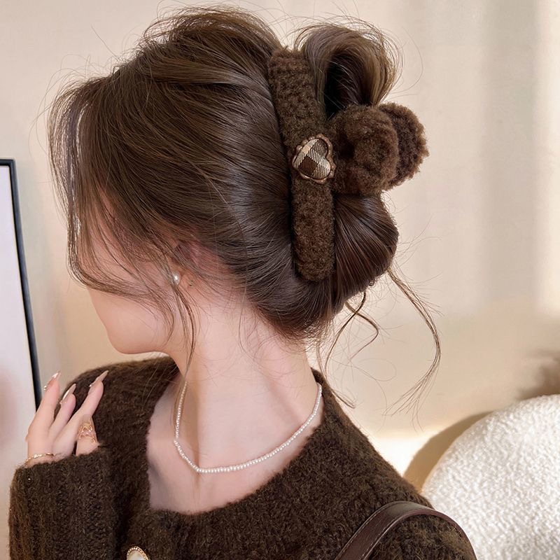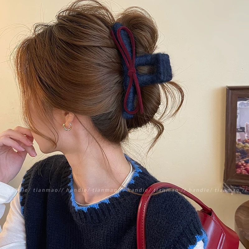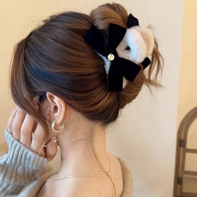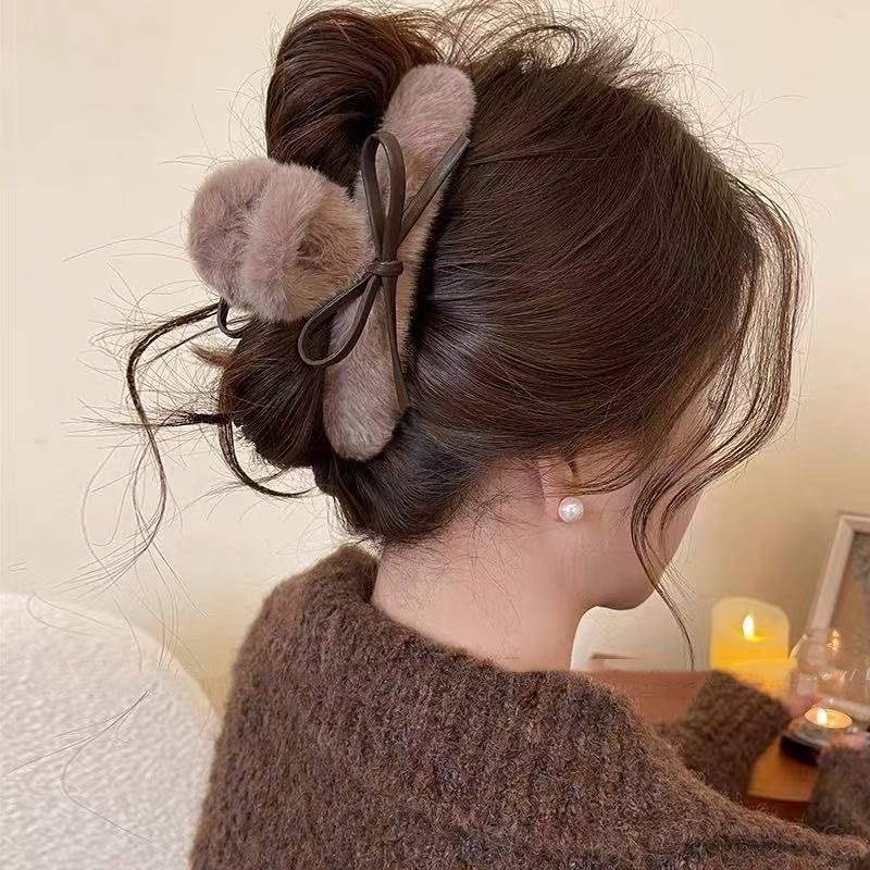 가을 겨울 리본 플러시 머리핀 대형 헤어클립 여성용 2025 신상 귀여운 뒷머리 고급스러운 샤크 클립