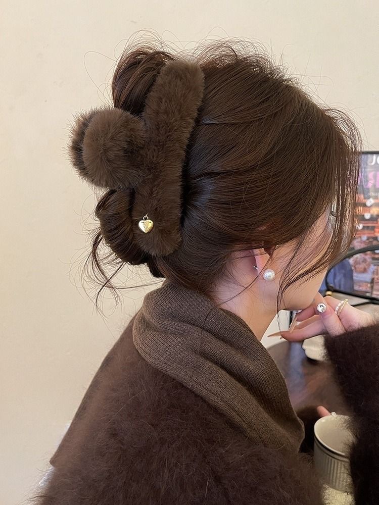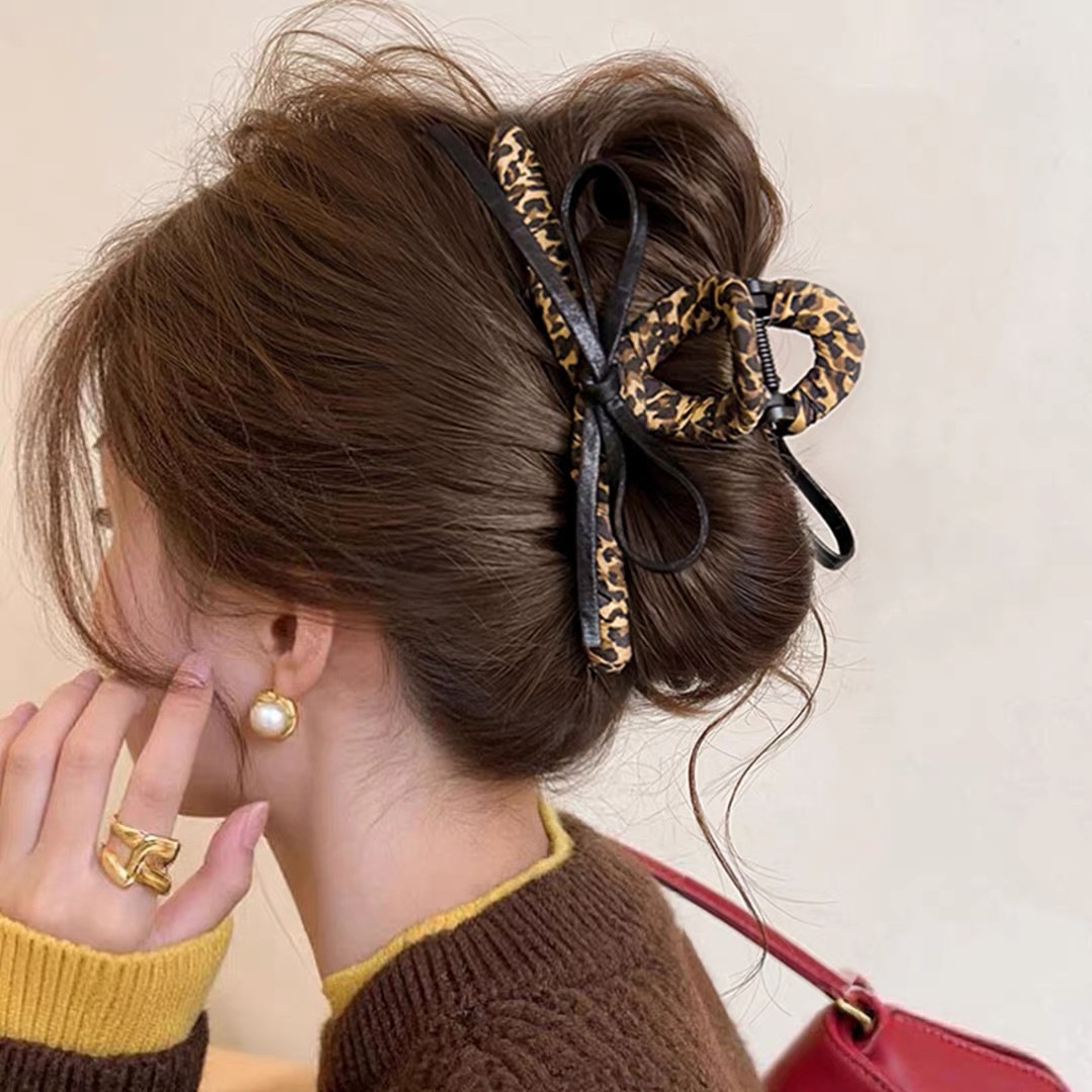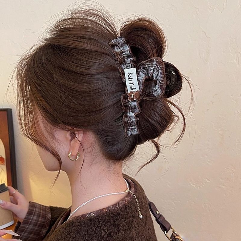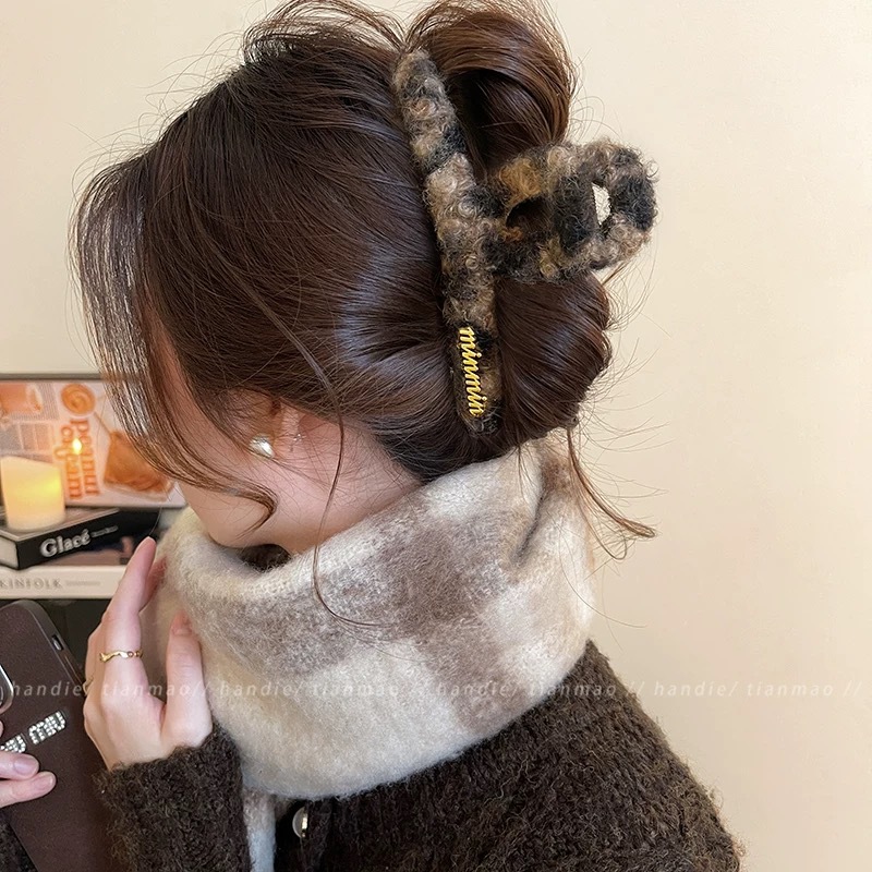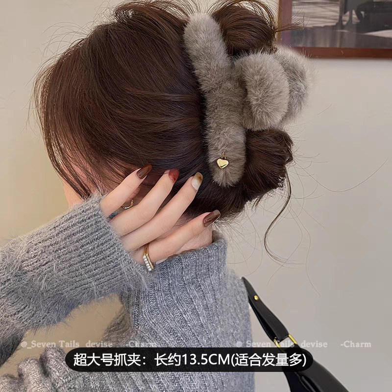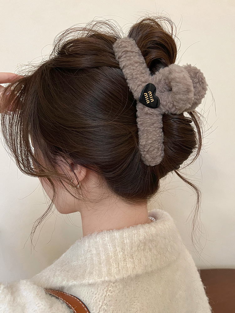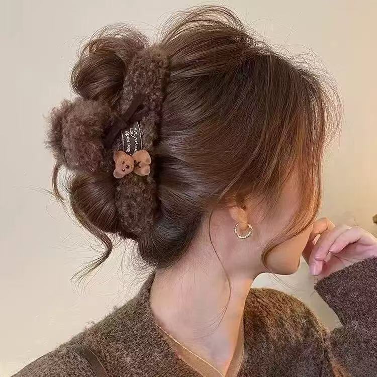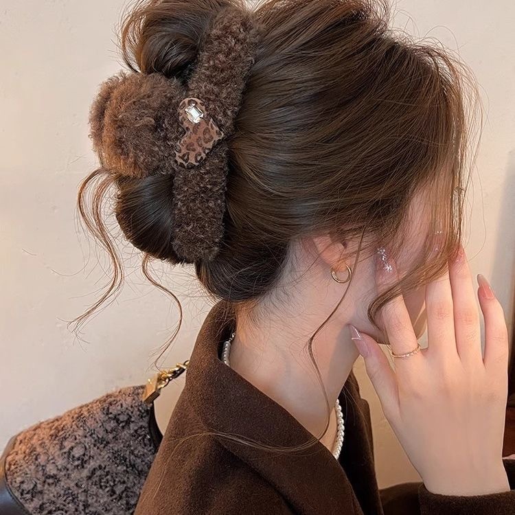 가을 겨울 리본 플러시 머리핀 대형 헤어클립 여성용 2025 신상 귀여운 뒷머리 고급스러운 샤크 클립