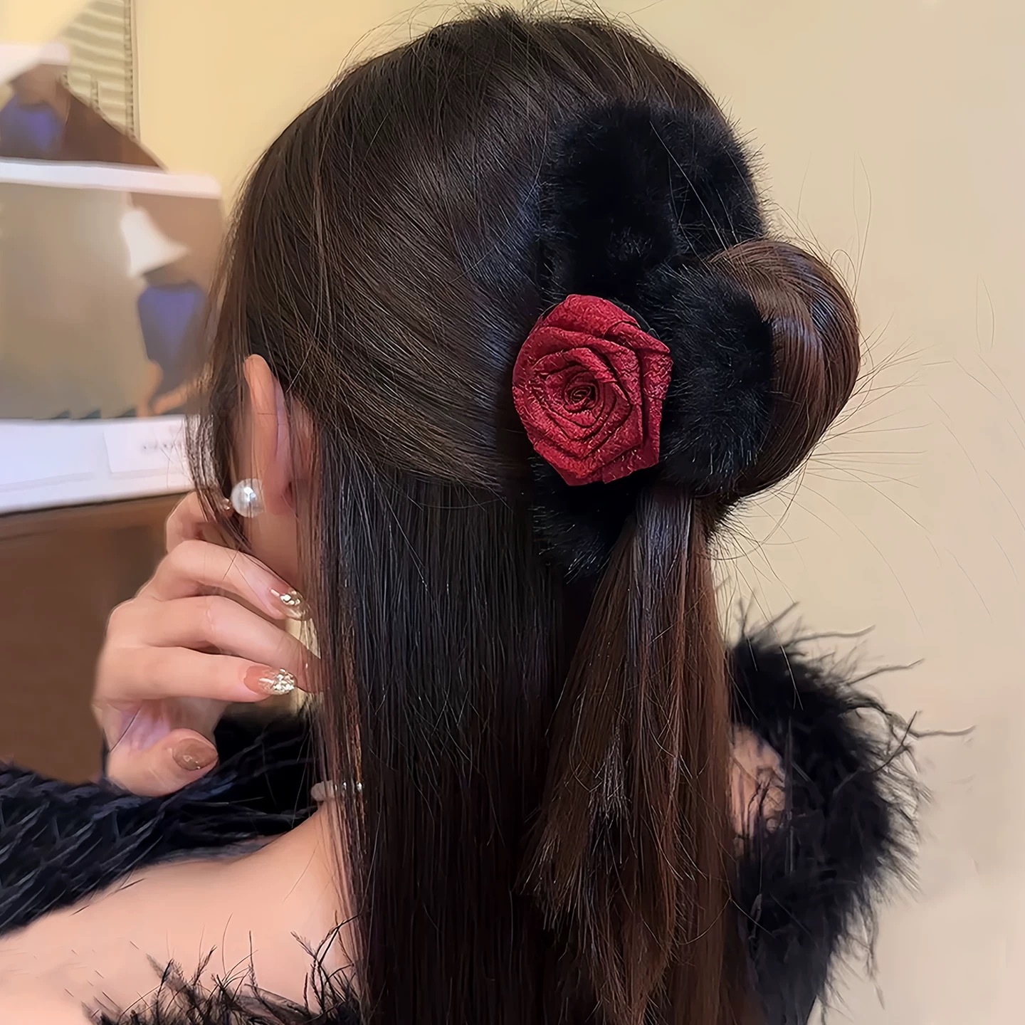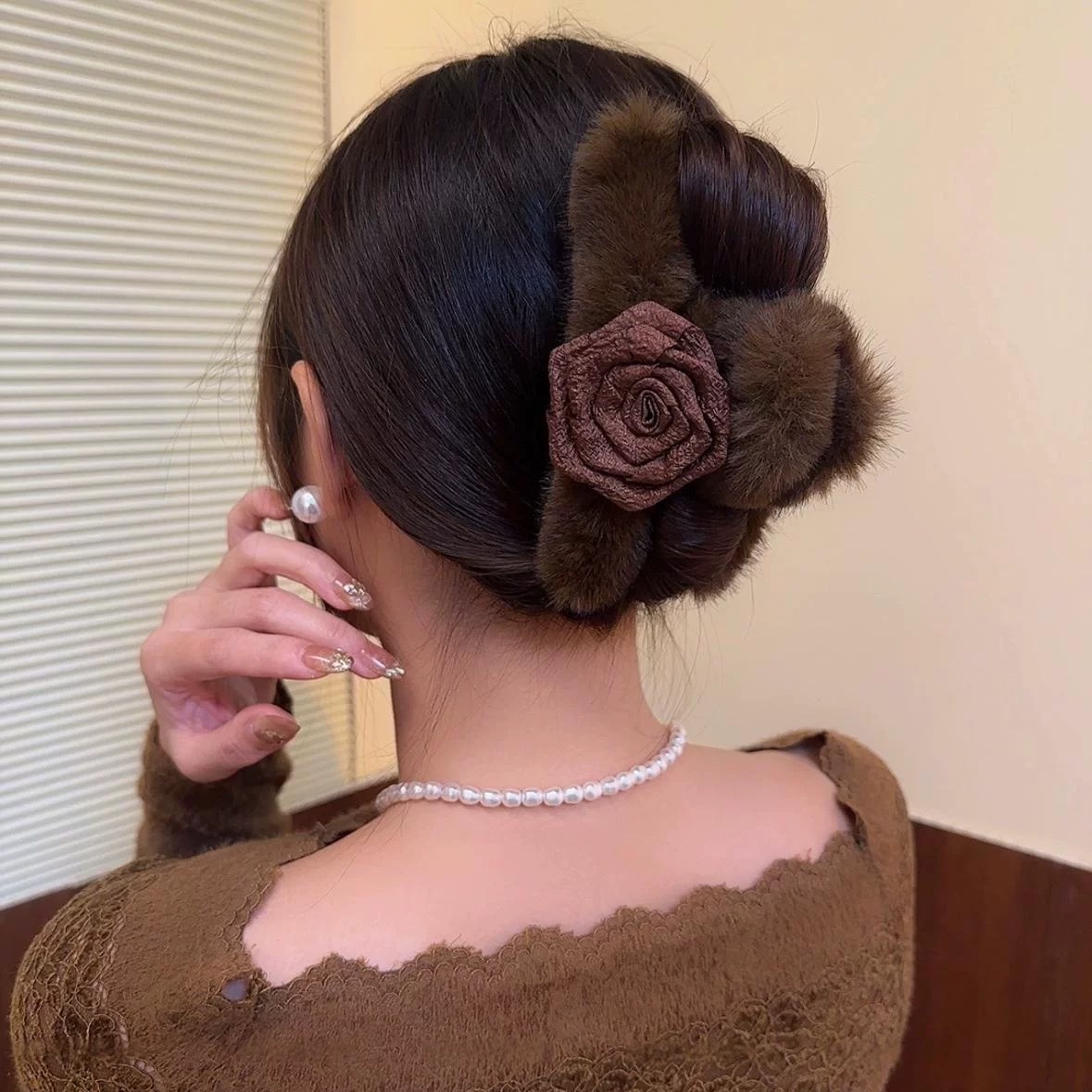 • 100#갈색 패브릭 장미 플러시 헤어 그립 약 13cm