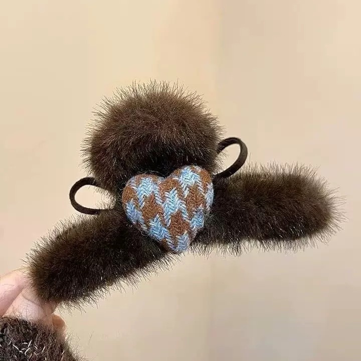 • 87#브라운 플록 하트 레오파드 테디 퍼 집게핀 (약 13cm)