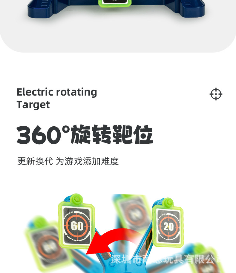 국경 간 새로운 어린이 전기 자기 회전 목표 장거리 소프트 총알 사격 연습 대상 세트 장난감 도매스토어 가기