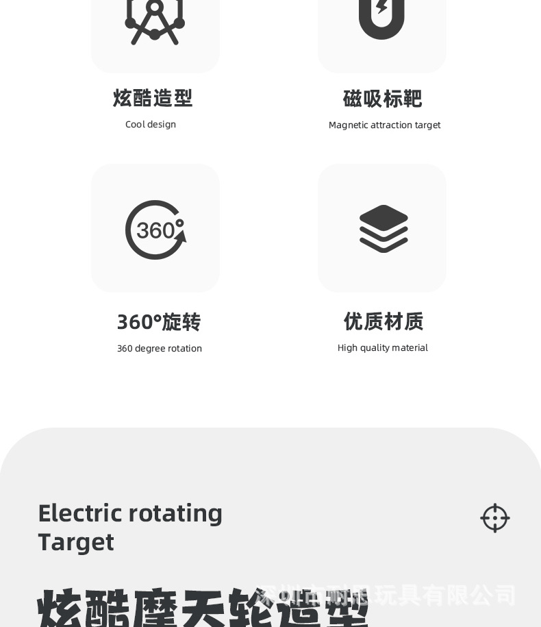국경 간 새로운 어린이 전기 자기 회전 목표 장거리 소프트 총알 사격 연습 대상 세트 장난감 도매