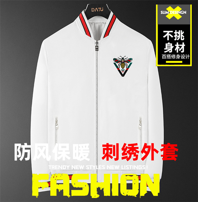 화이트 비즈 자수 재킷 남성 2024 새로운 유럽 스타일 패션 하이 엔드 캐주얼 야구 재킷스토어 가기