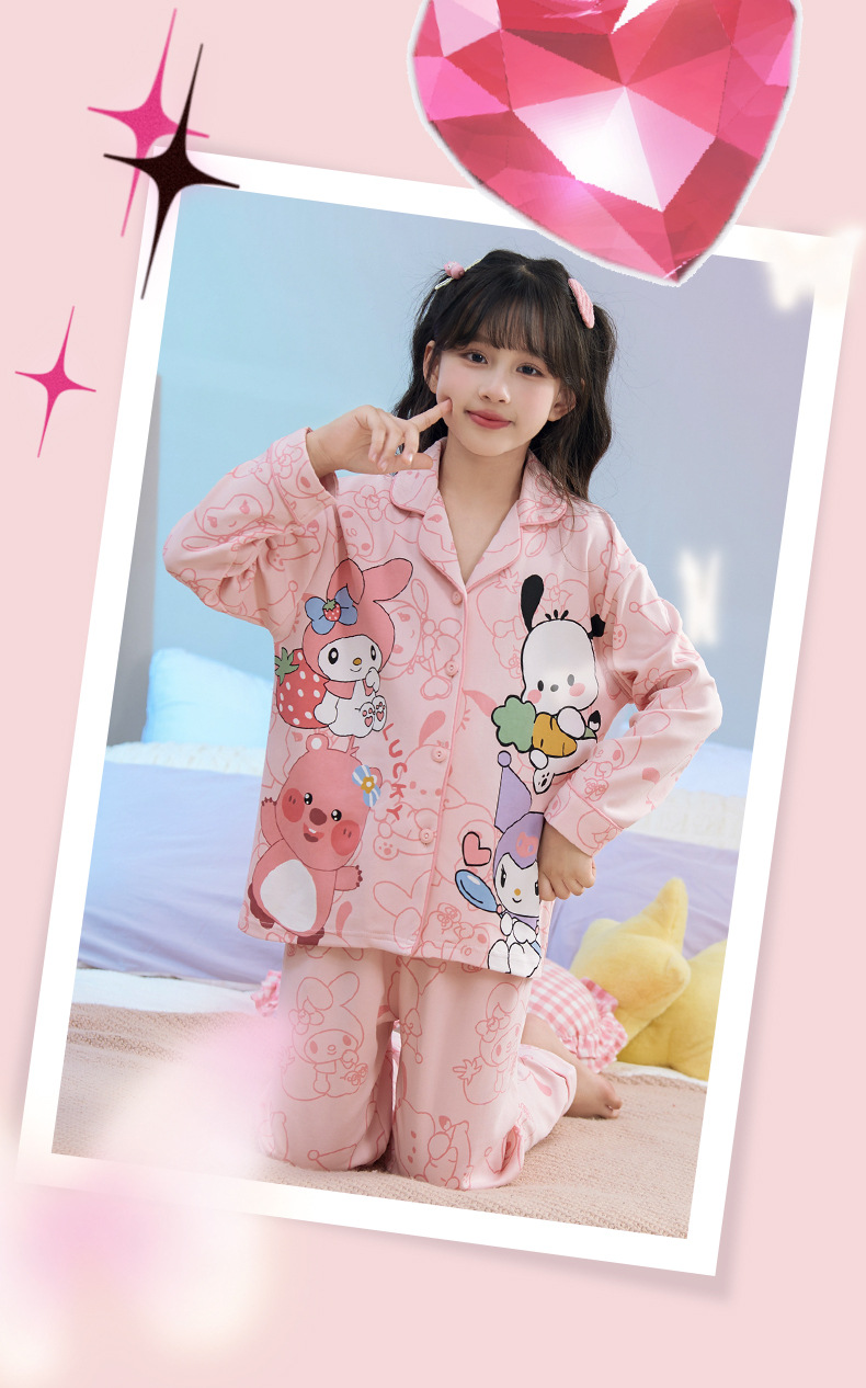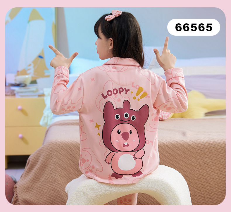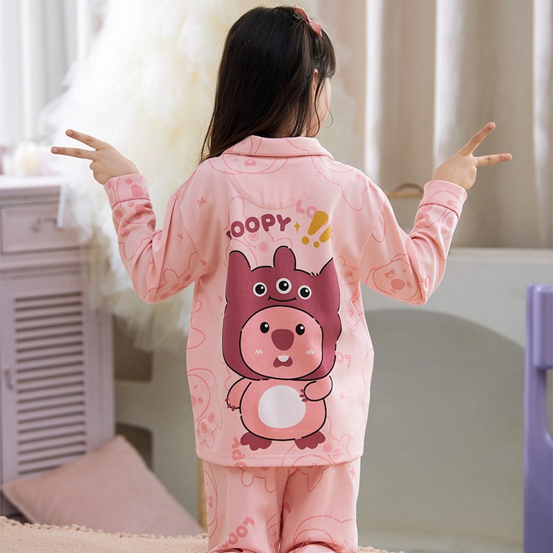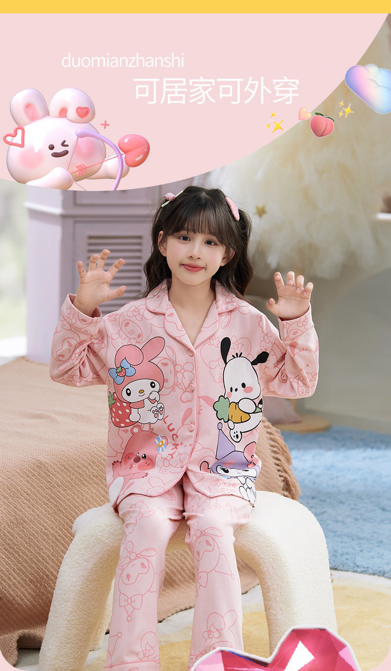 순면 어린이 잠옷 봄과 가을 귀여운 만화 소녀 옷깃 카디건 긴 소매 바지 키즈 홈 옷스토어 가기
