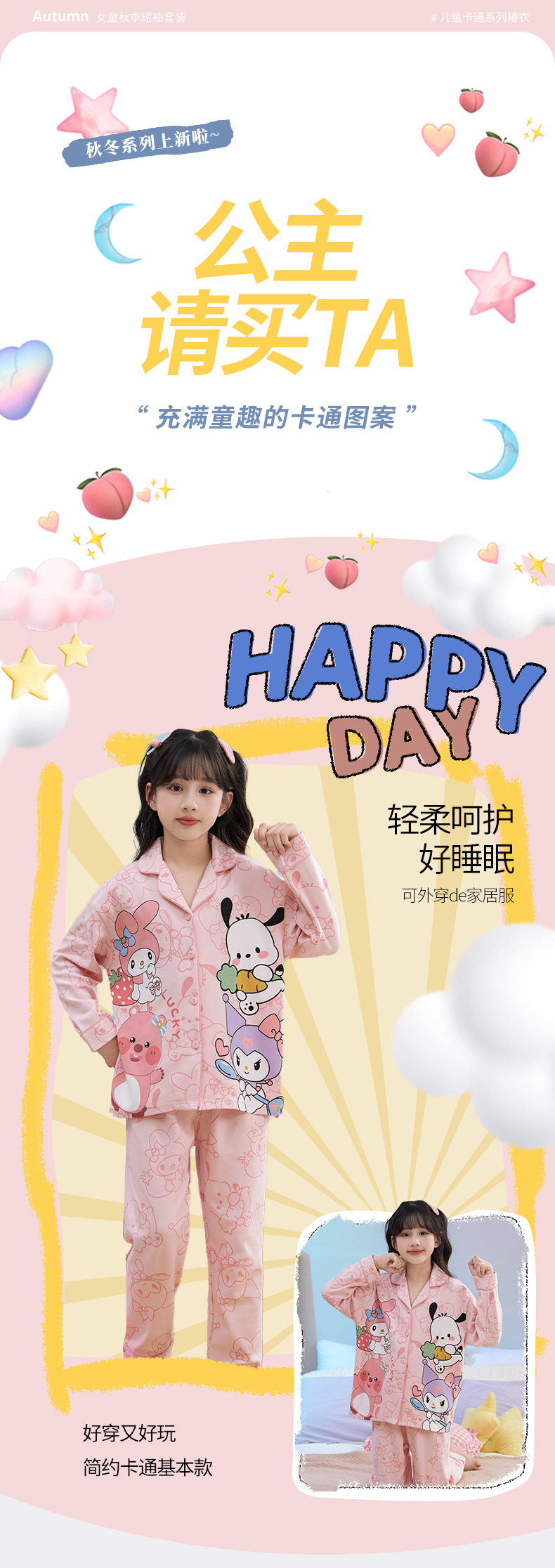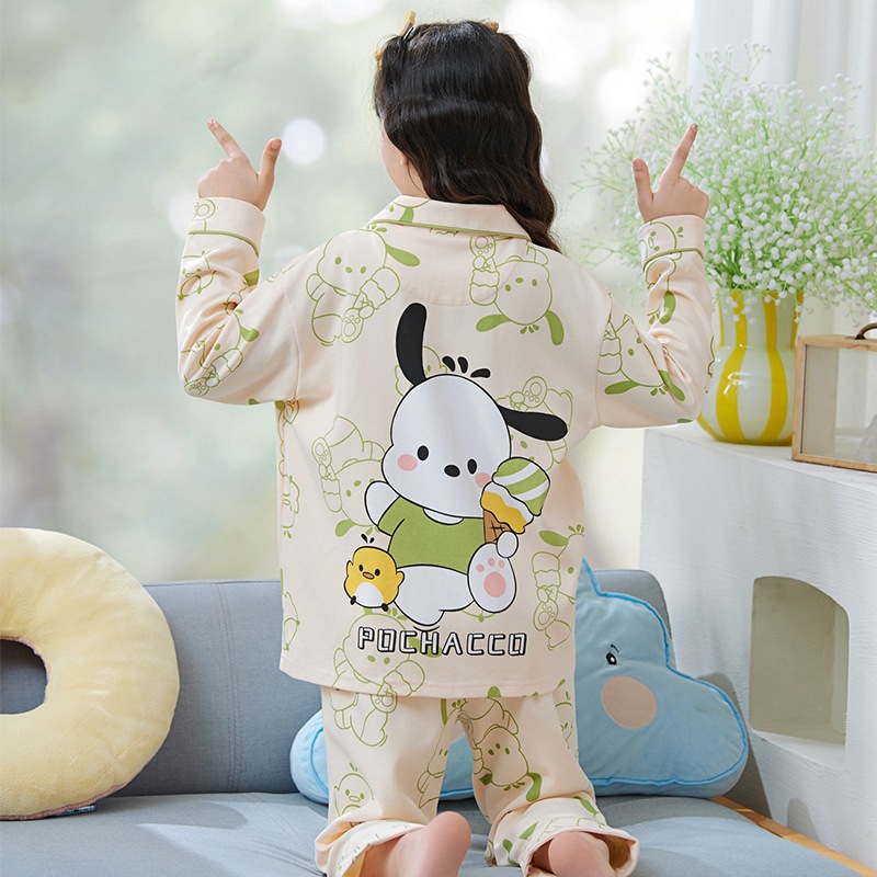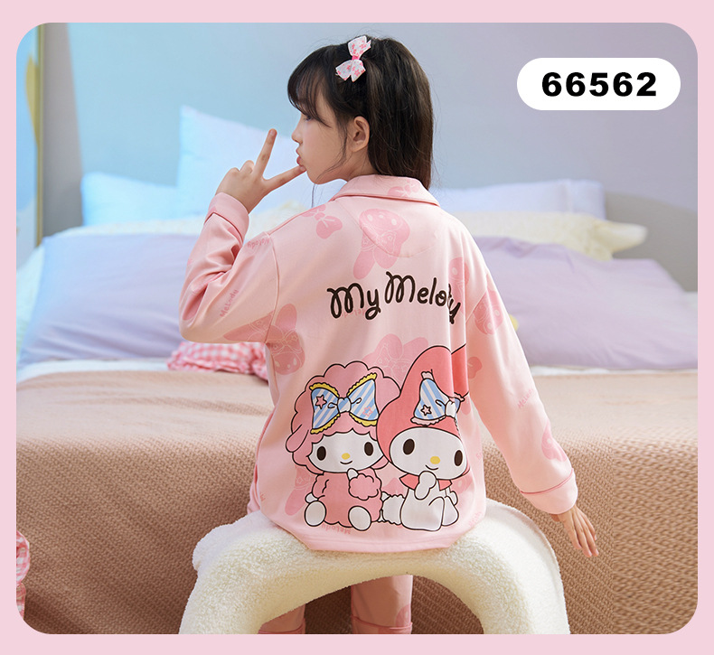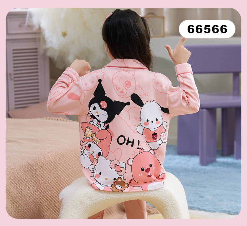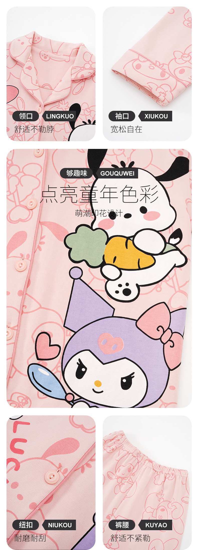 순면 어린이 잠옷 봄과 가을 귀여운 만화 소녀 옷깃 카디건 긴 소매 바지 키즈 홈 옷스토어 가기