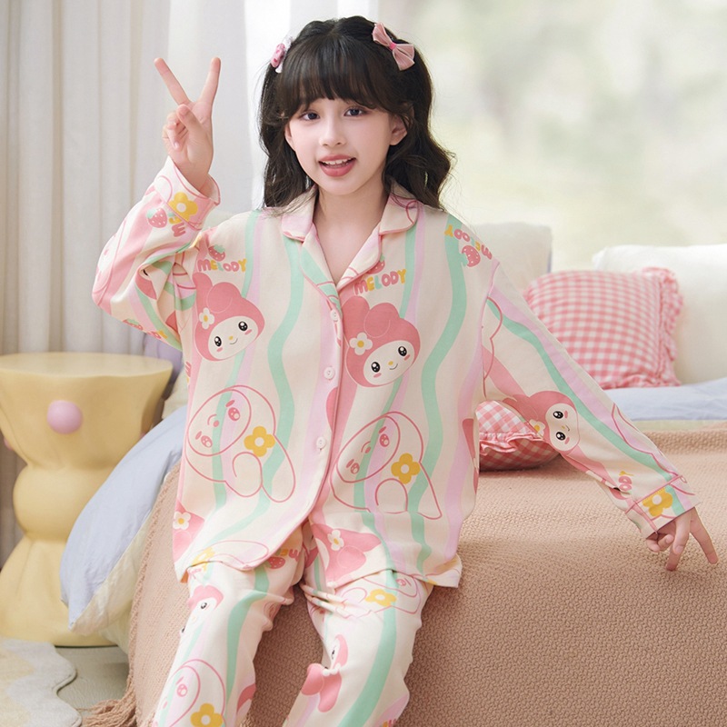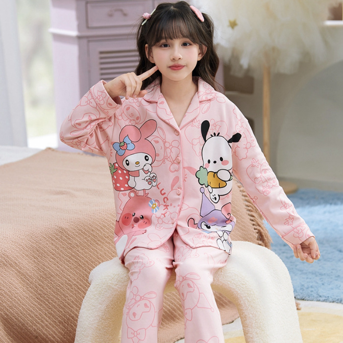 순면 어린이 잠옷 봄과 가을 귀여운 만화 소녀 옷깃 카디건 긴 소매 바지 키즈 홈 옷