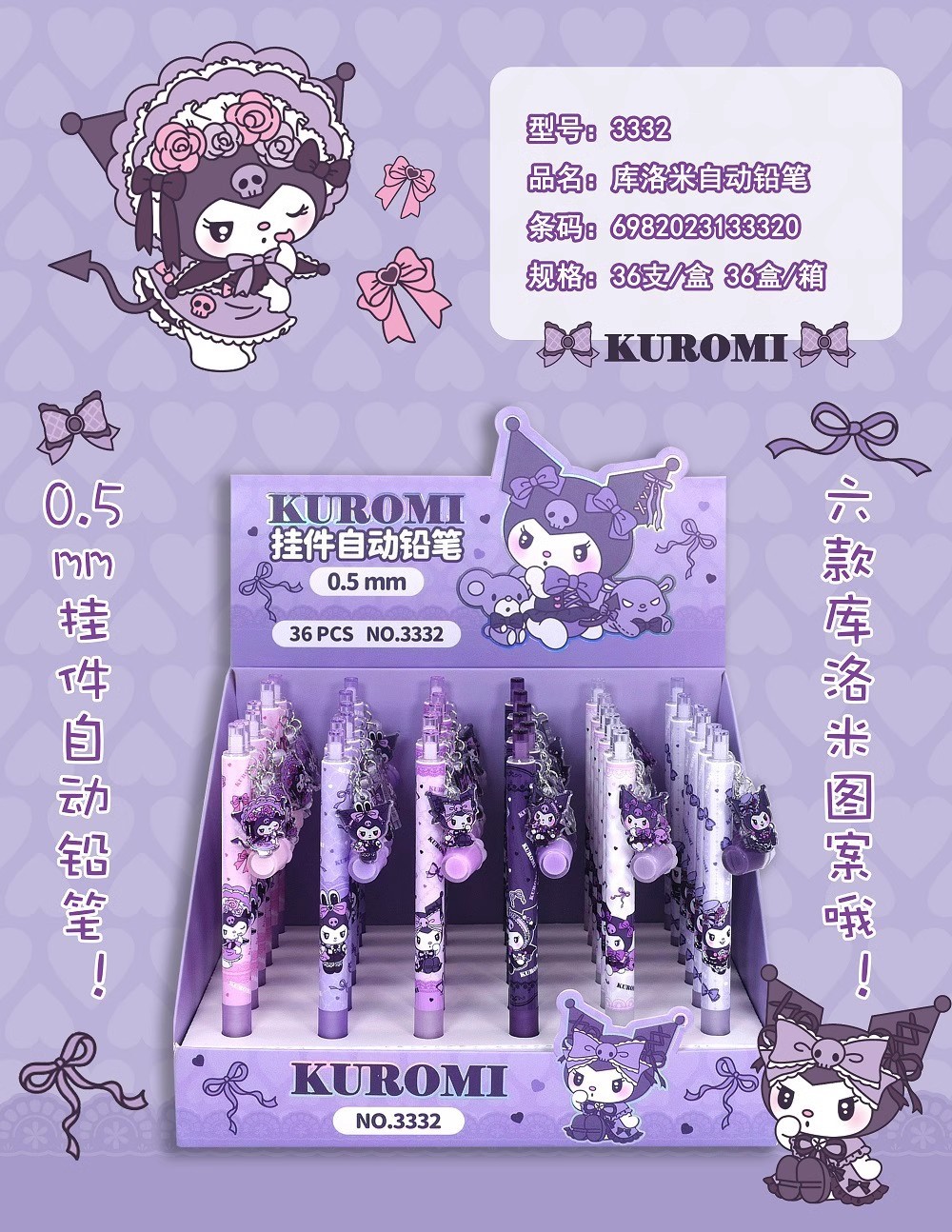 3332 KUROMI 펜던트 자동 연필 KUROMI 높은 색상 가치 만화 0.5 펜던트 학생 활동 연필스토어 가기