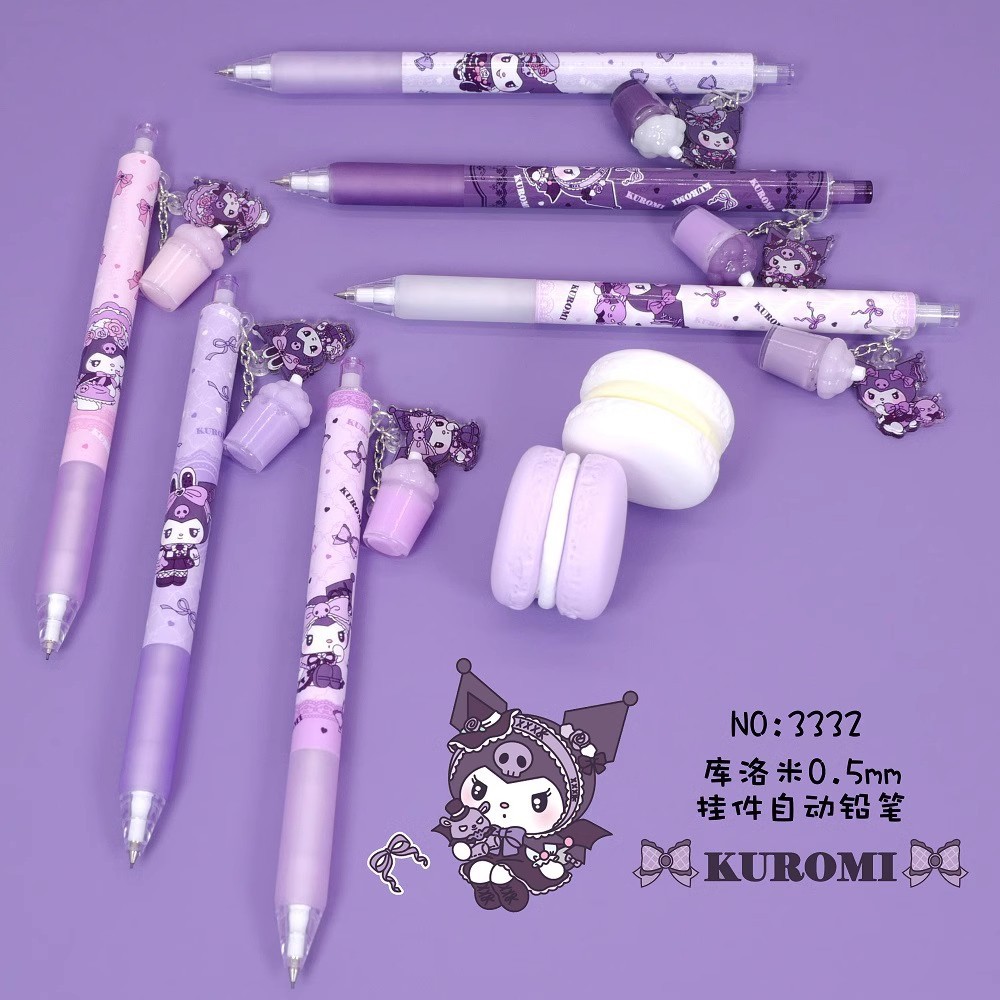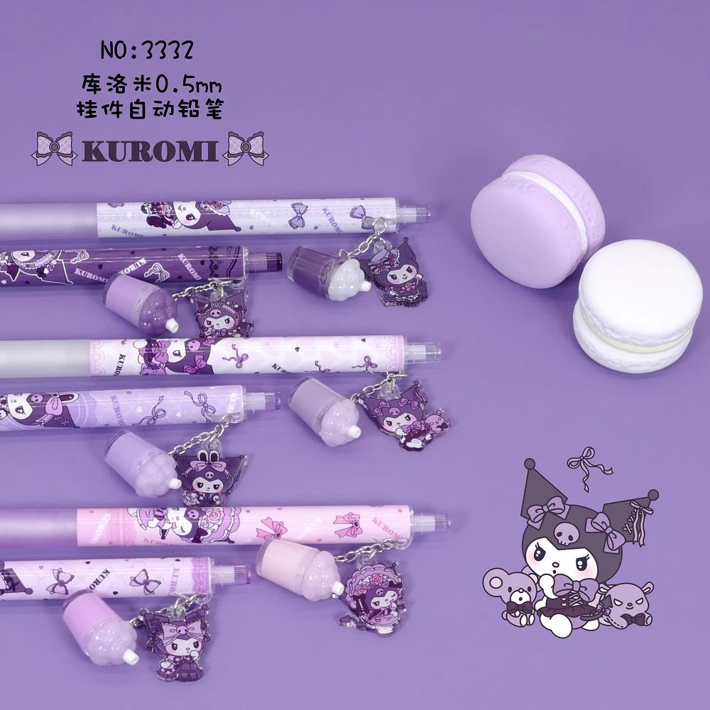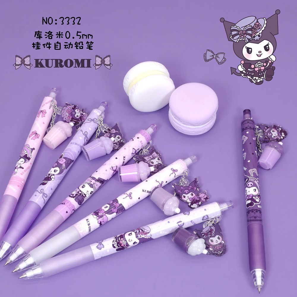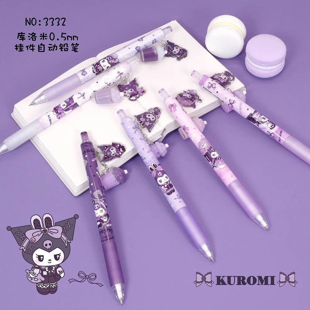 3332 KUROMI 펜던트 자동 연필 KUROMI 높은 색상 가치 만화 0.5 펜던트 학생 활동 연필