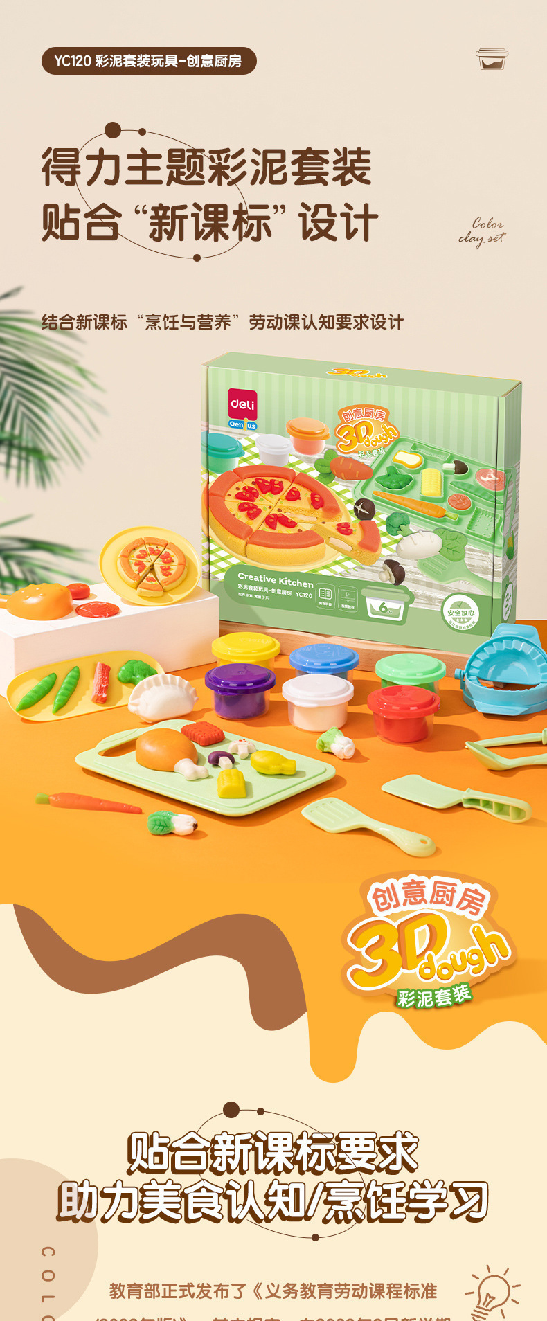 델리 YC120 주방 시리즈 울트라 라이트 컬러 진흙 세트 장난감 어린이 DIY 수제 유치원 플라스틱스토어 가기