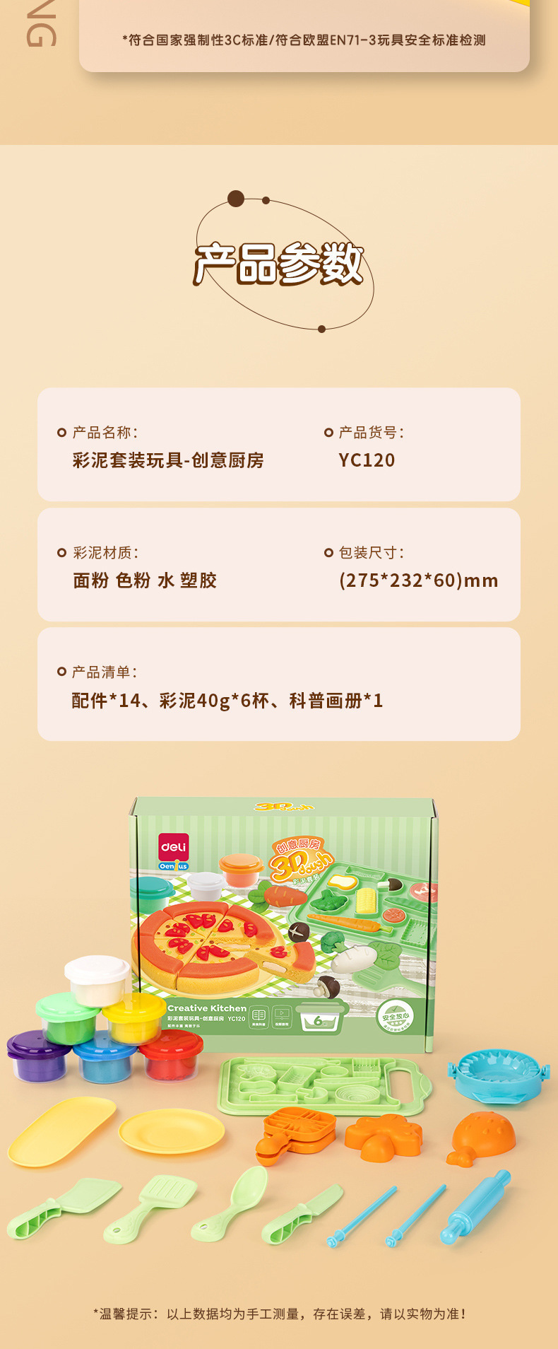 델리 YC120 주방 시리즈 울트라 라이트 컬러 진흙 세트 장난감 어린이 DIY 수제 유치원 플라스틱