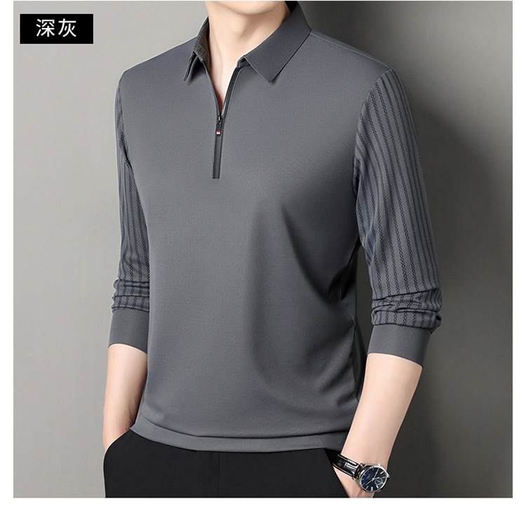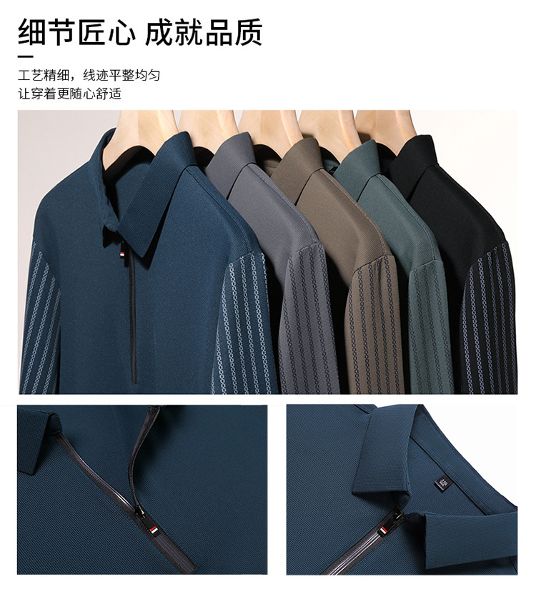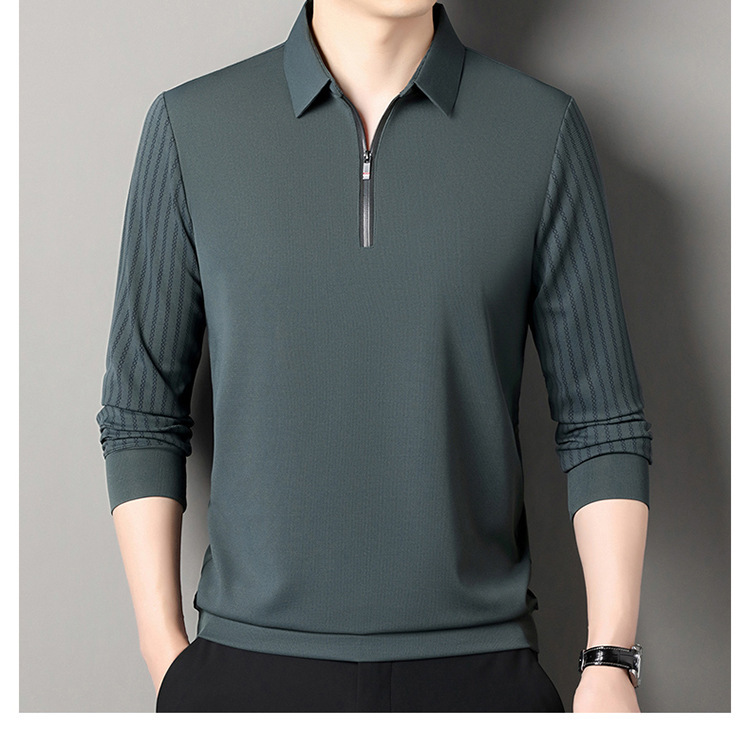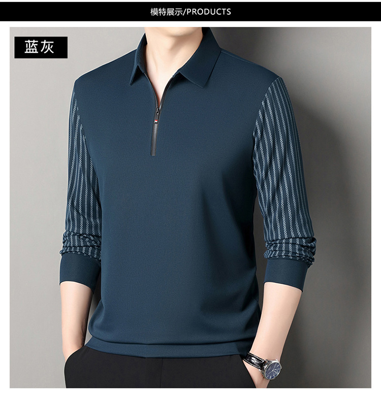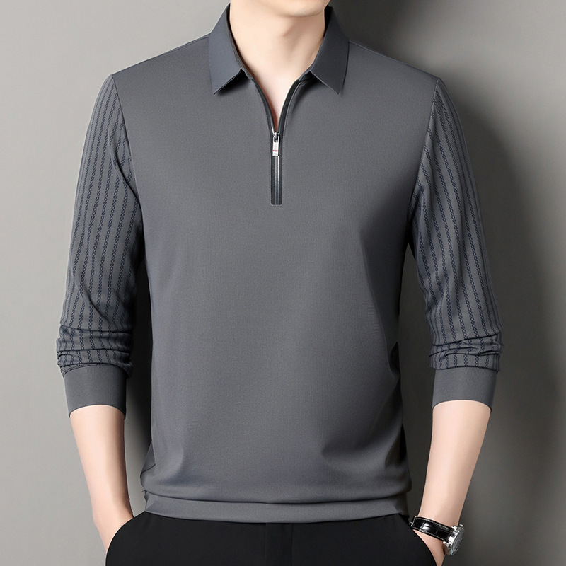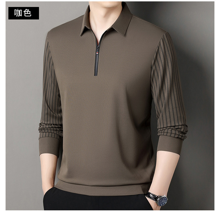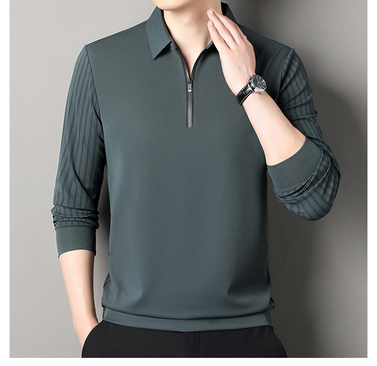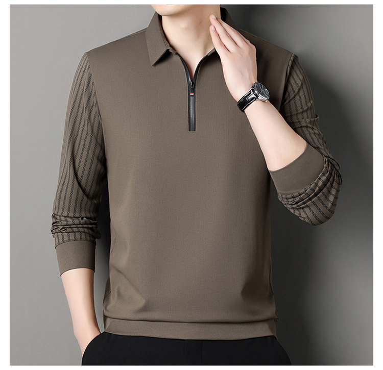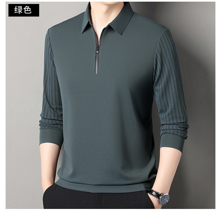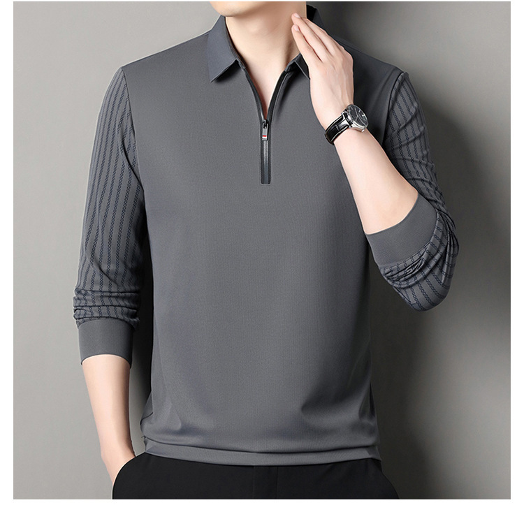 남성용 원활한 긴팔 폴로 셔츠 라이트 럭셔리 슬리브 패턴 가을 새로운 느슨한 스티칭 청소년 옷깃 올매치베이스 셔츠