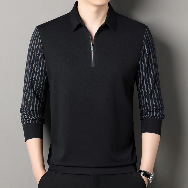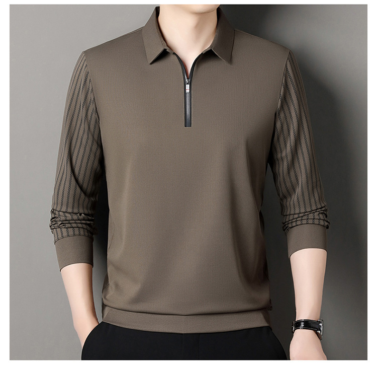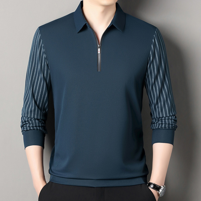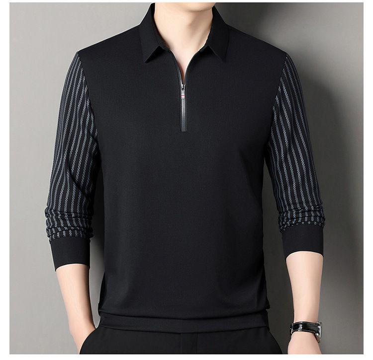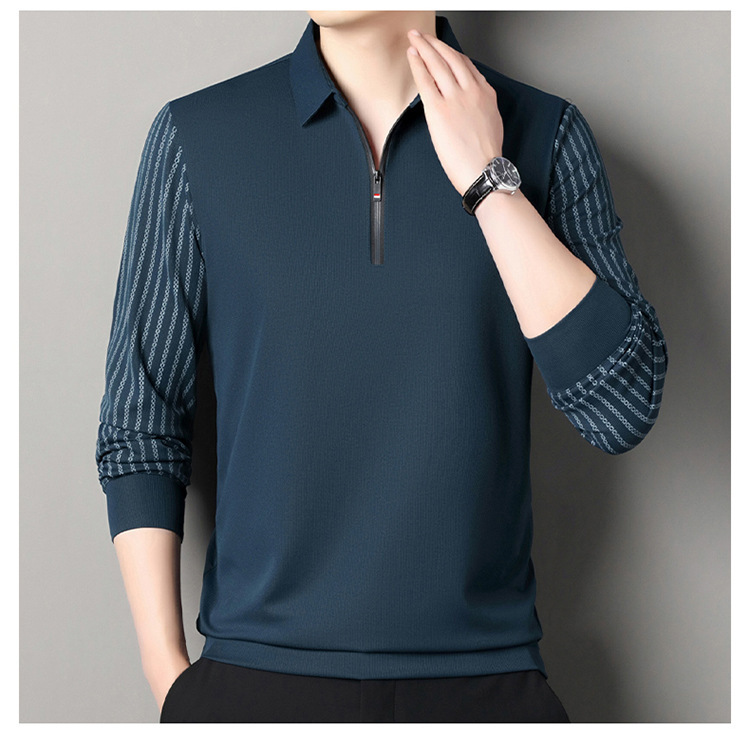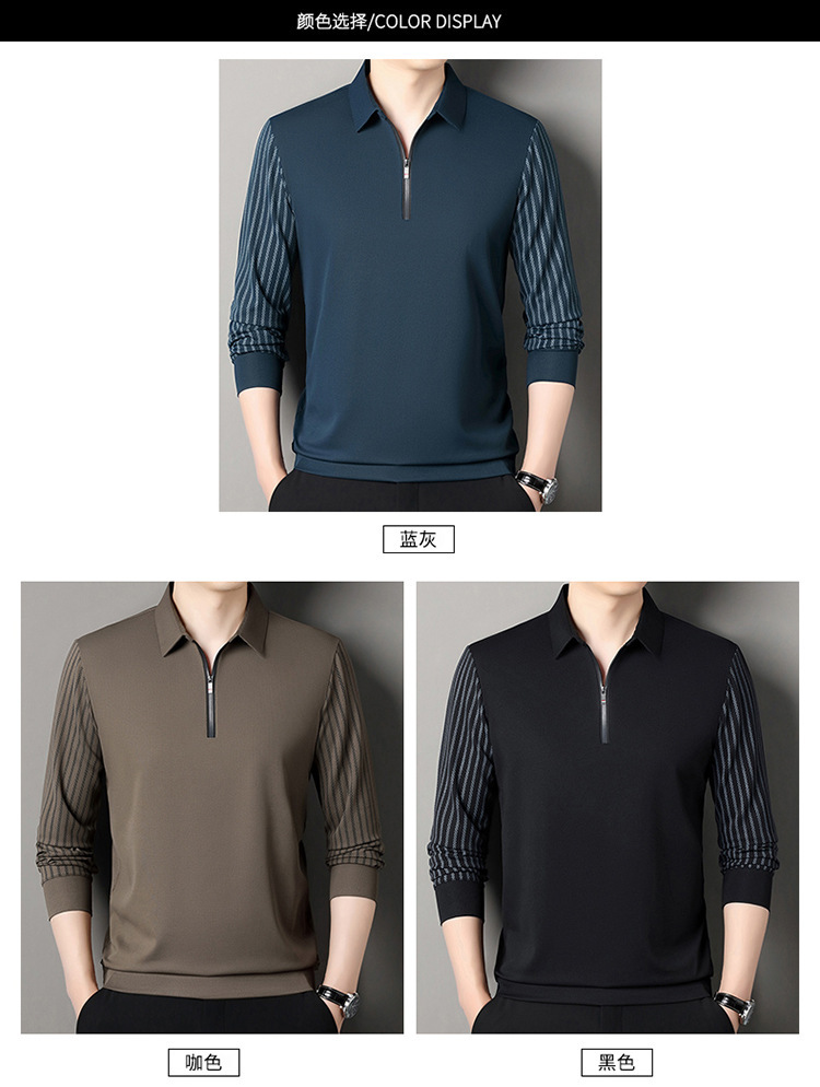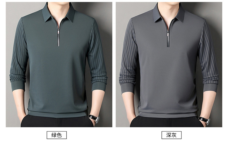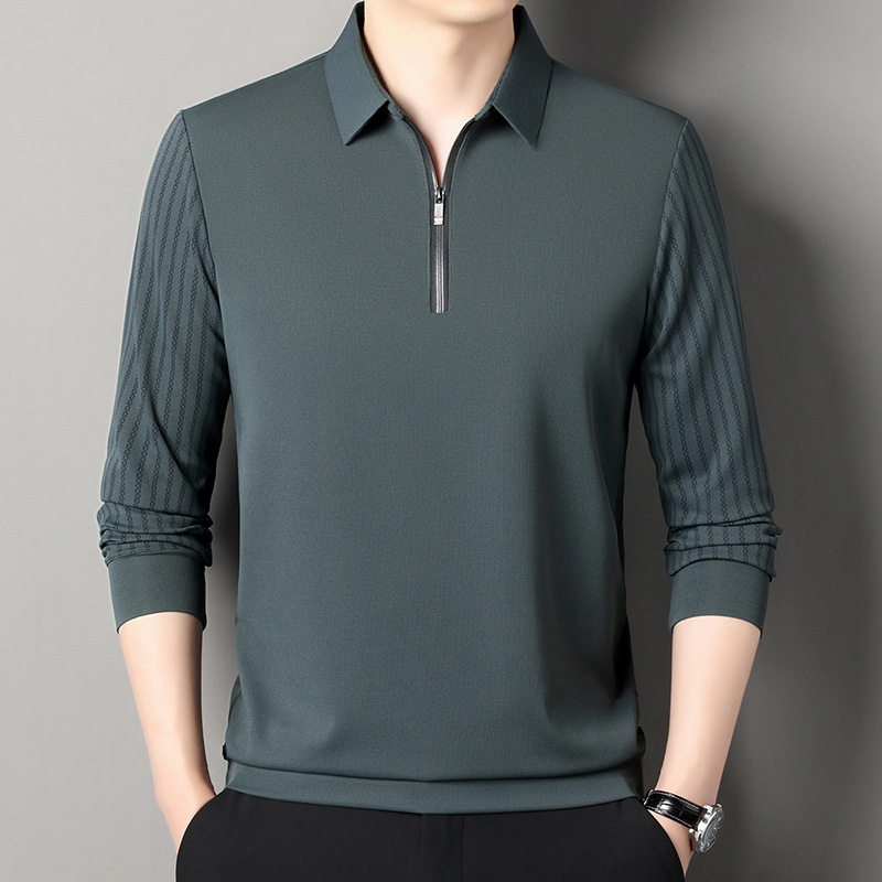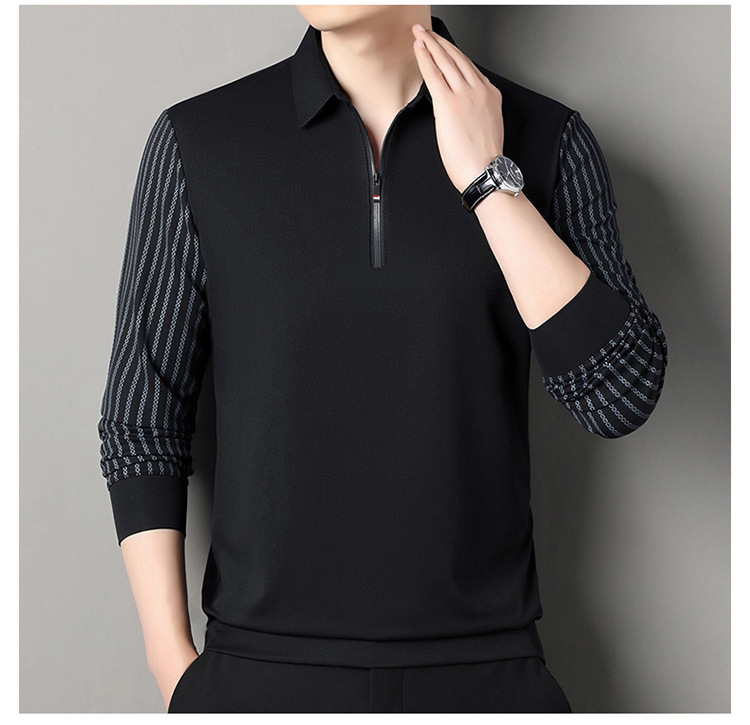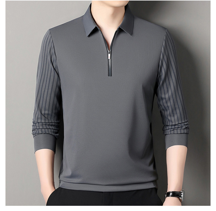 남성용 원활한 긴팔 폴로 셔츠 라이트 럭셔리 슬리브 패턴 가을 새로운 느슨한 스티칭 청소년 옷깃 올매치베이스 셔츠