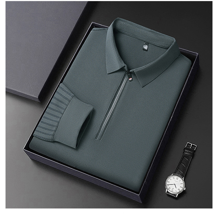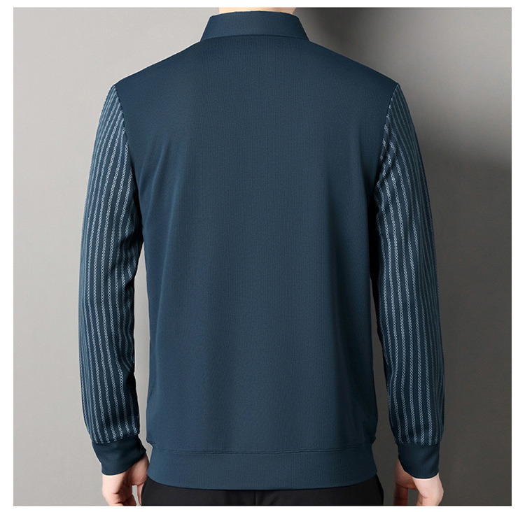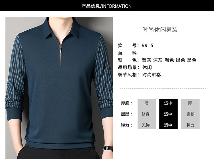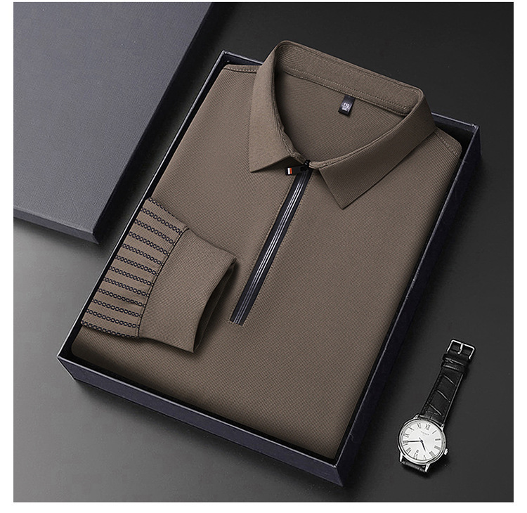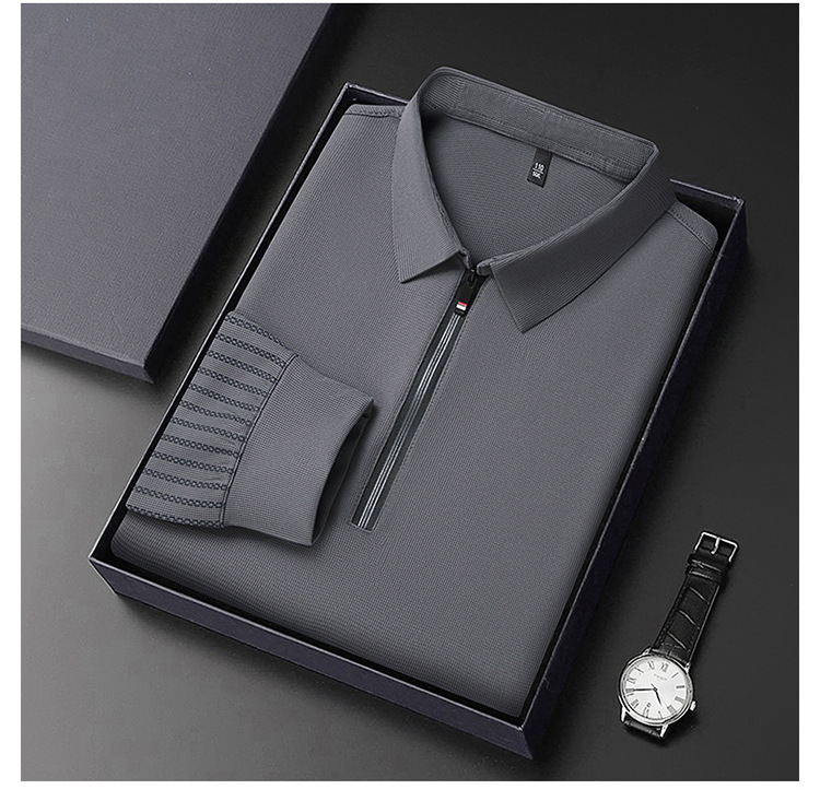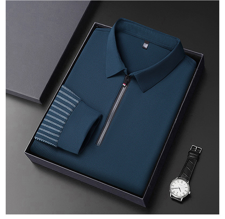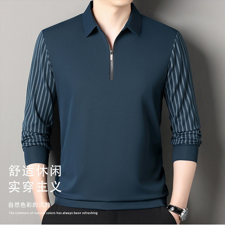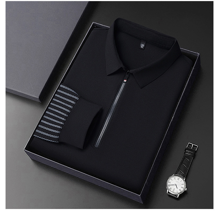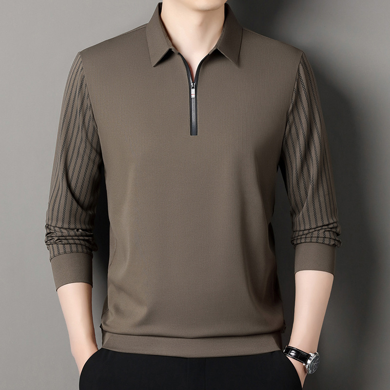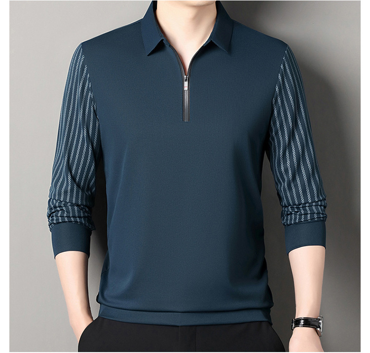 남성용 원활한 긴팔 폴로 셔츠 라이트 럭셔리 슬리브 패턴 가을 새로운 느슨한 스티칭 청소년 옷깃 올매치베이스 셔츠