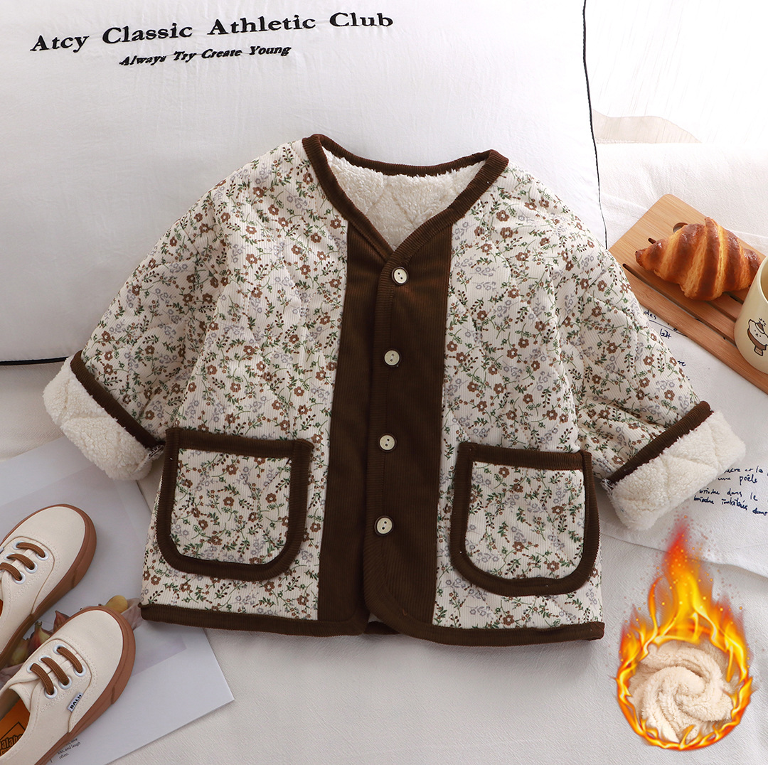 어린이 코트 3 층 따뜻한 코튼 패딩 의류 소녀 유행 루즈 레트로 스타일 코튼 패딩 코트 기모 중년 어린이 따뜻한 옷