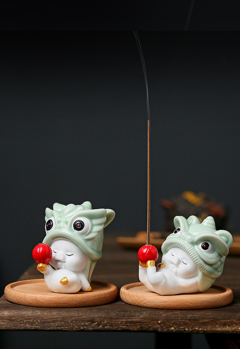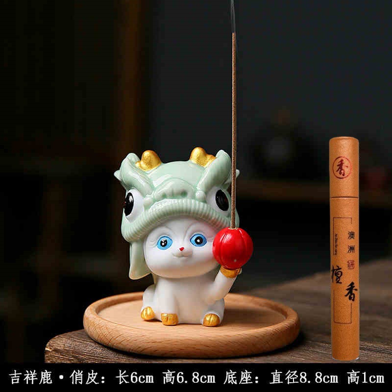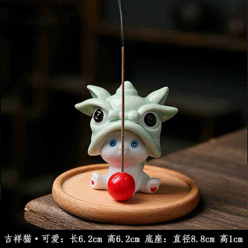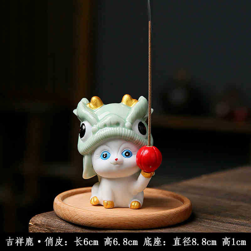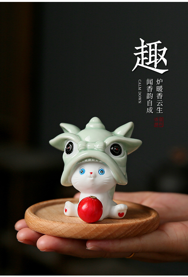 사자 춤 작은 동물 고양이 향긋한 삽입 가정용 실내 세라믹 새끼 돼지 fawn 향기로운 마스코트 차 애완 동물 작은 장식품스토어 가기