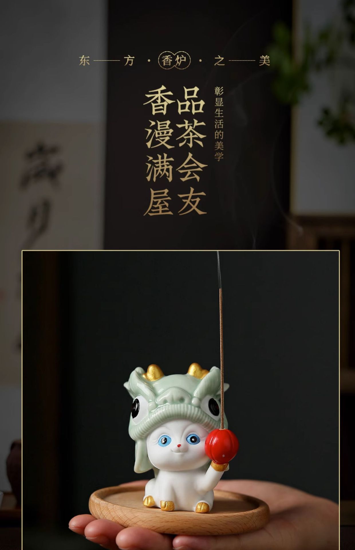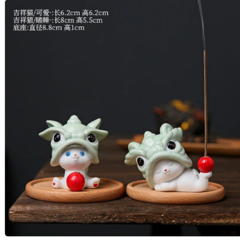 • 상서로운 새끼 고양이 향(2가지 스타일, 1쌍) + 통나무 베이스