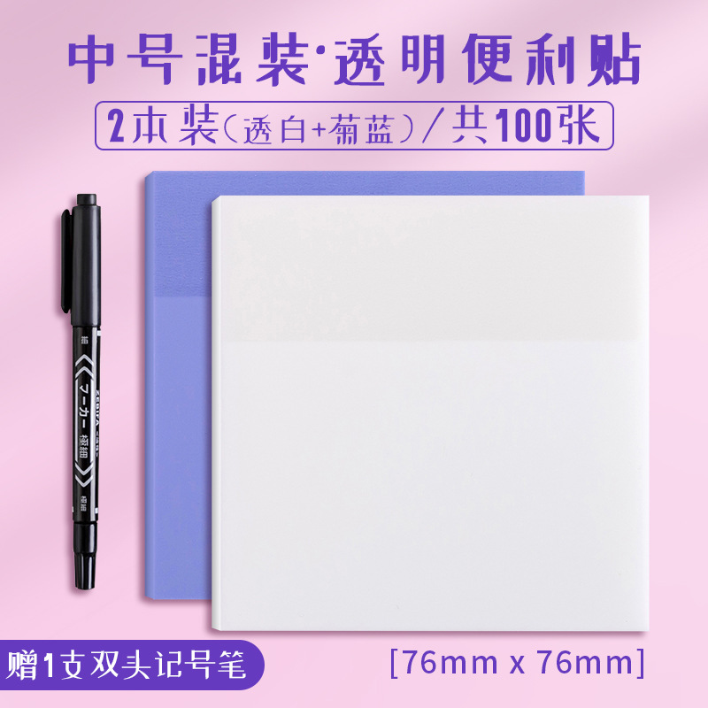 • 중형/투명블루+투명핑크/2팩, 총 100매 + 양면펜