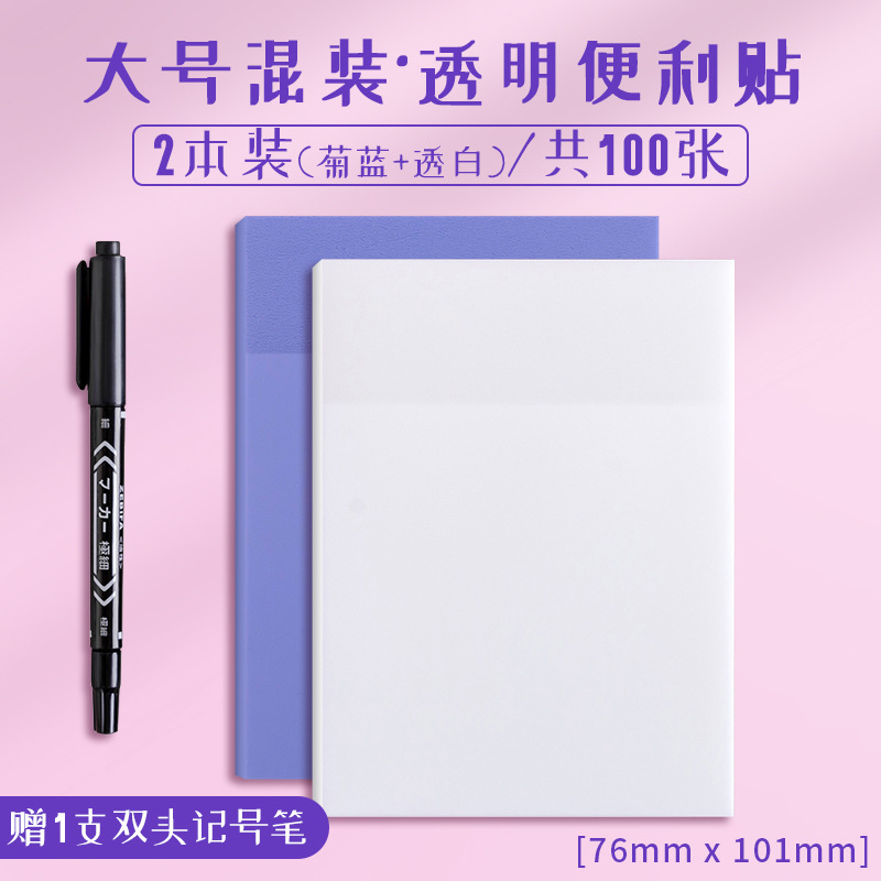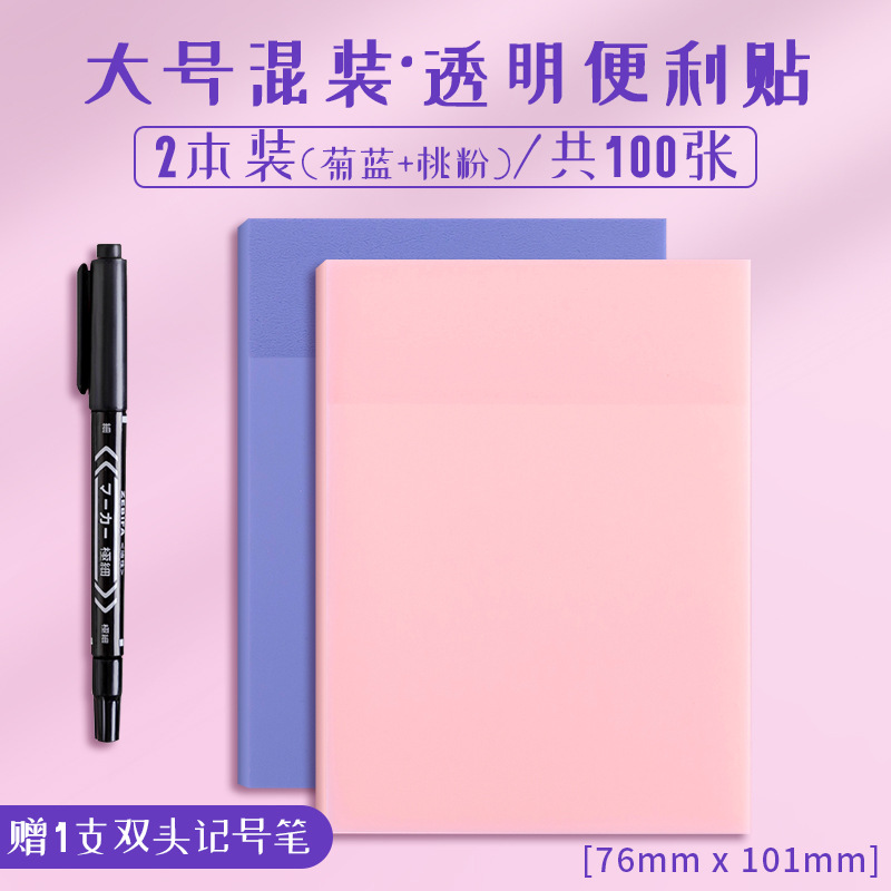 • 대형/투명블루+투명핑크/2팩, 총 100매 + 양면펜