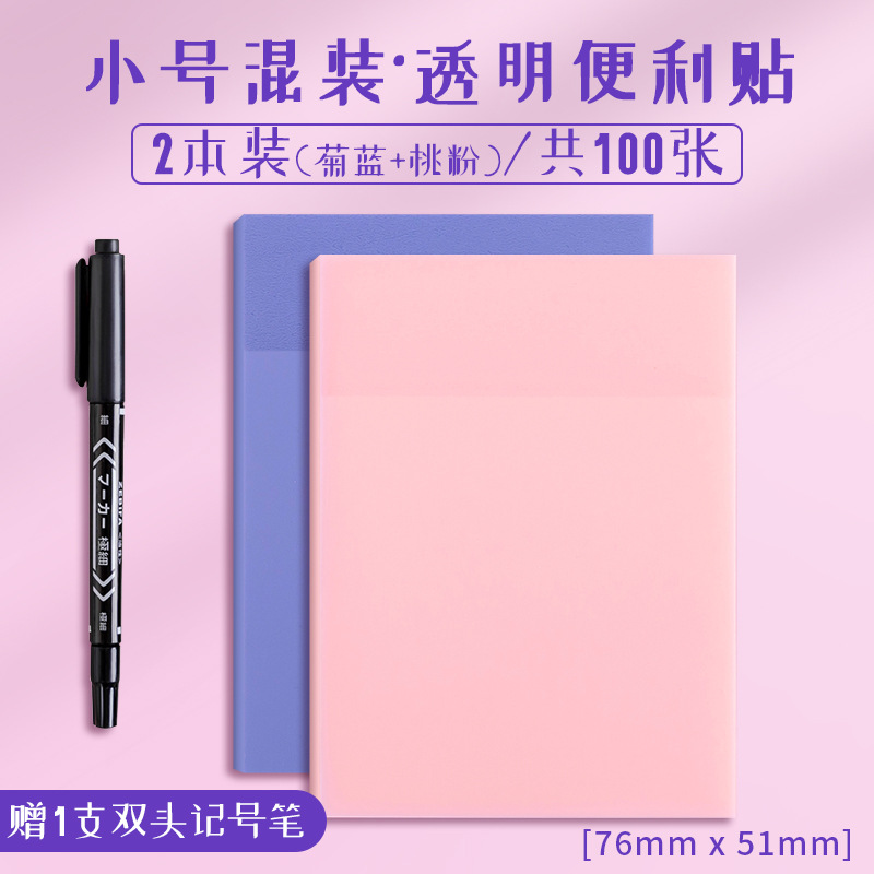 • 소형/투명블루+투명핑크/2팩, 총 100매 + 양면펜