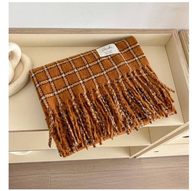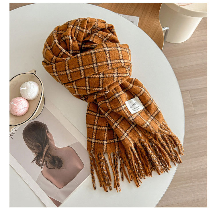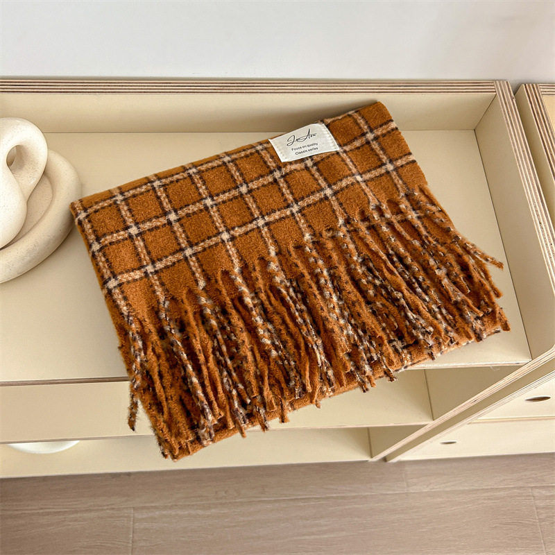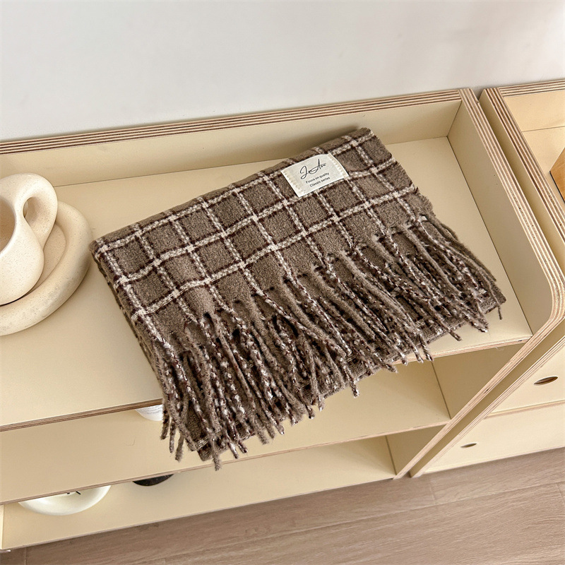가을과 겨울 새 스타일 샤넬 소프트 왁스 격자 무늬 스카프 여성 하이 엔드 한국식 올매치 따뜻한 스카프 학생과 커플스토어 가기