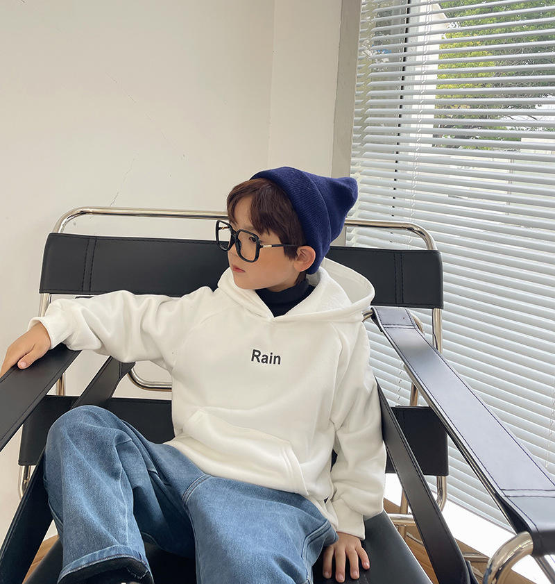 Tong Chenchen Mom 남성 아동복 겨울 스웨트 셔츠 어린이 후드 탑 퓨어 코튼 화이트 아기의 기모 스웨트 셔츠 올 매치 트렌디스토어 가기