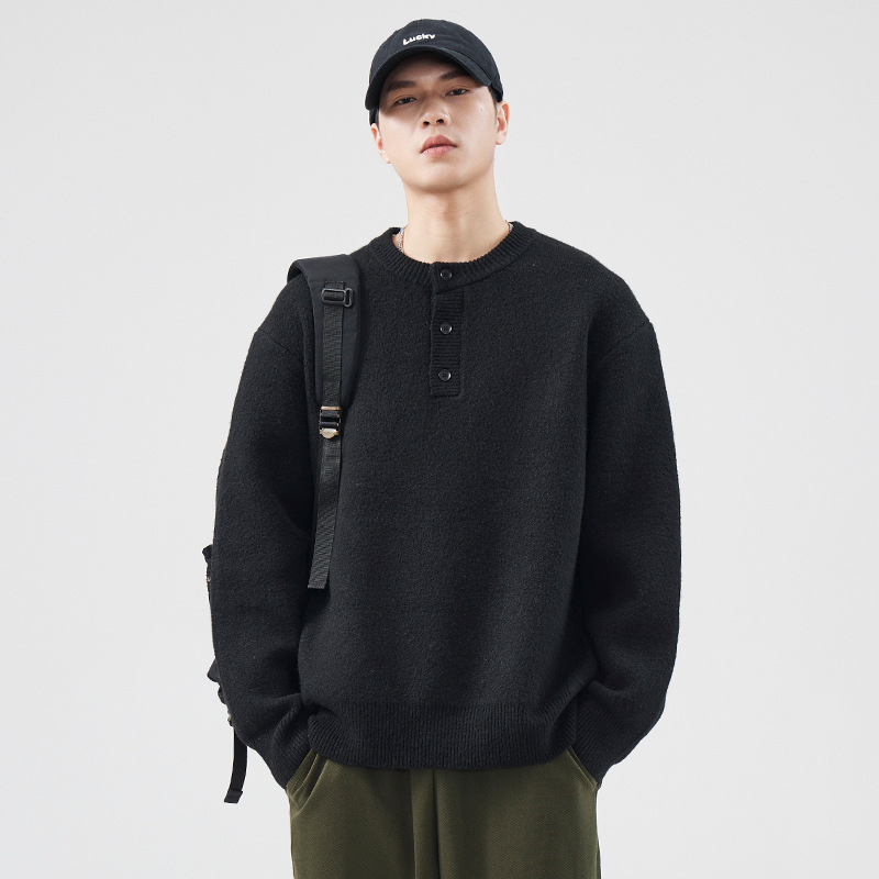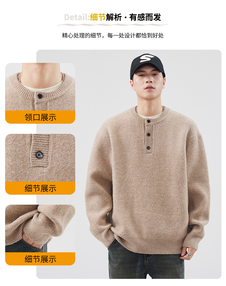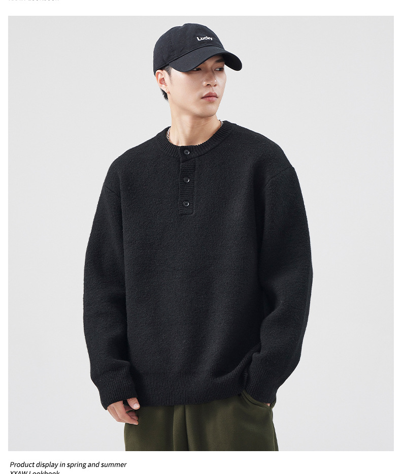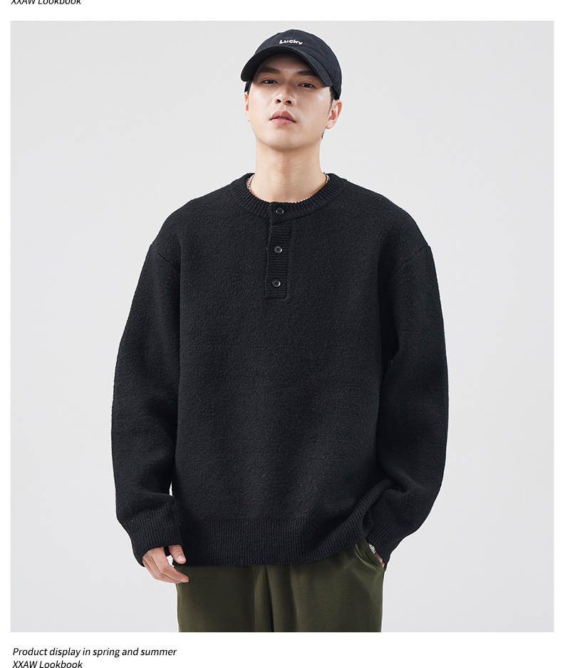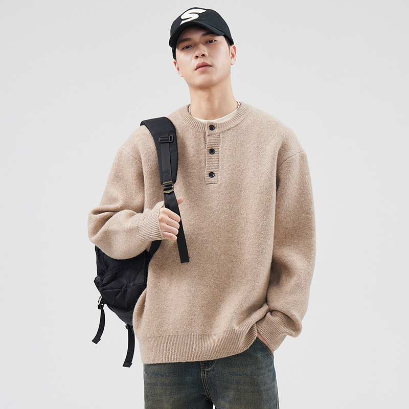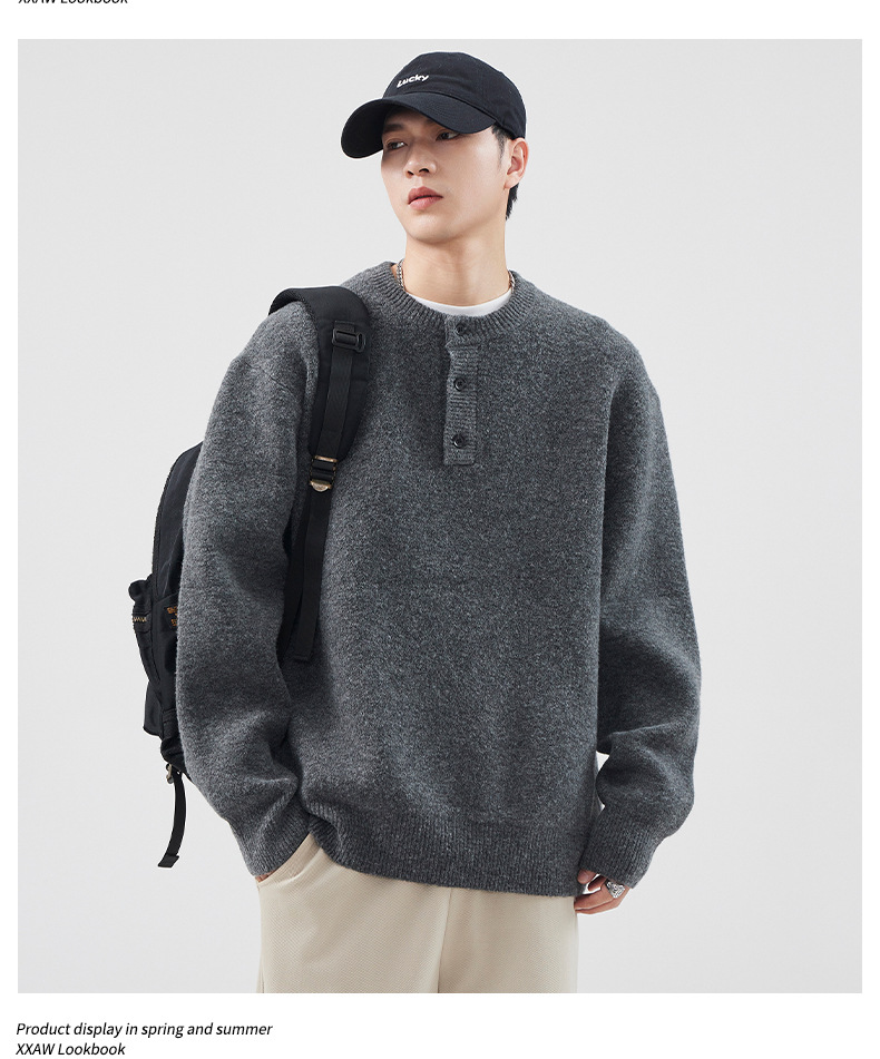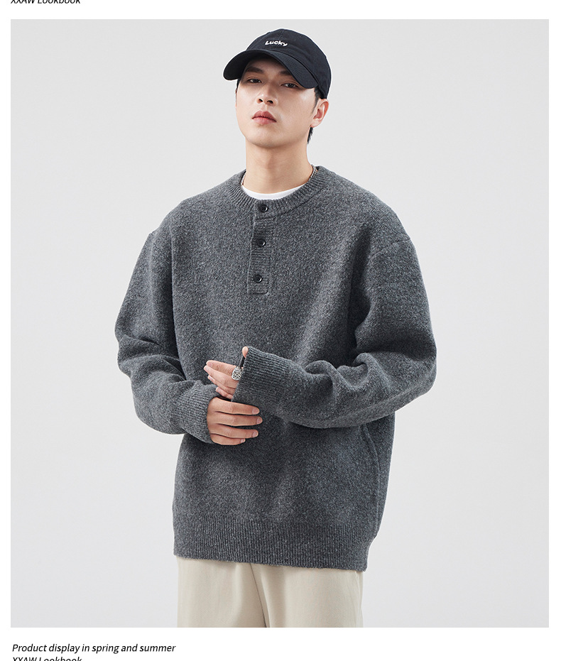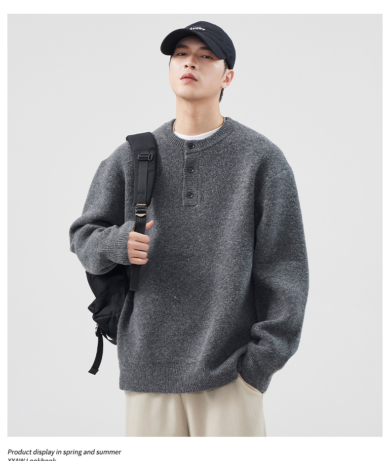 헨리 칼라 스웨터 코트 남자의 2024 새로운 가을과 겨울 느슨한 따뜻한 게으른 스타일 단색 회색 스웨터스토어 가기