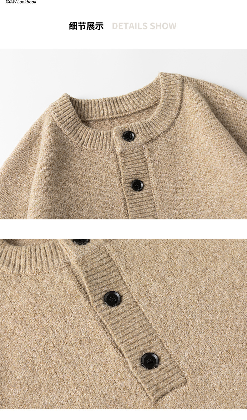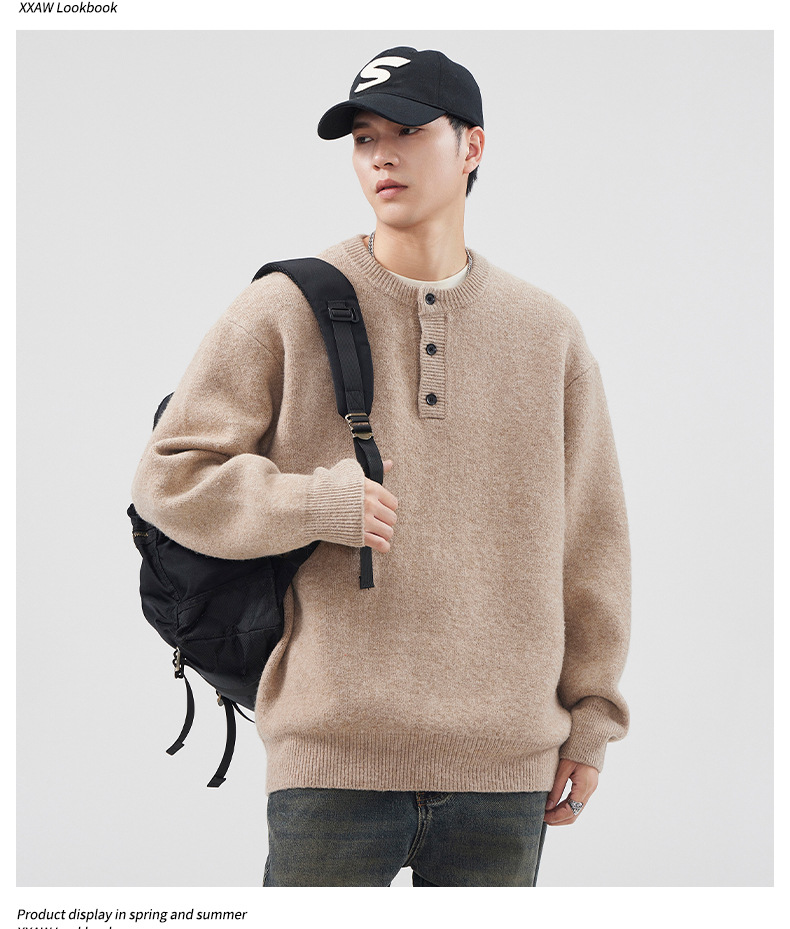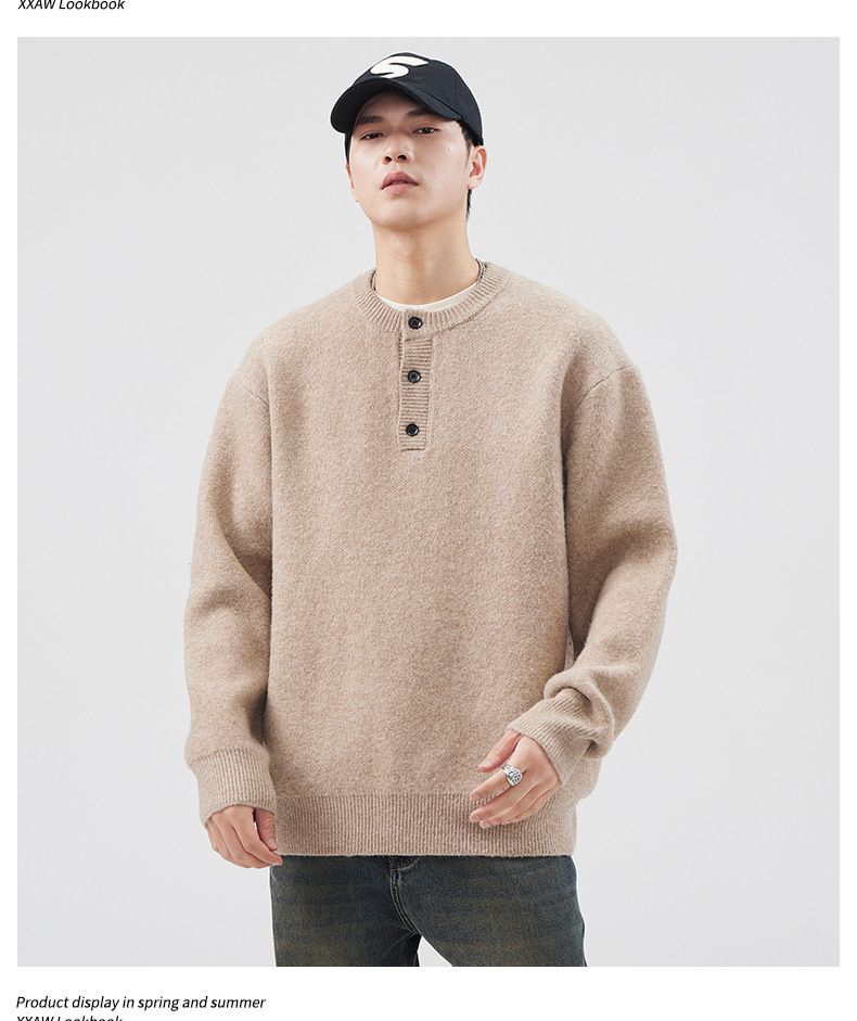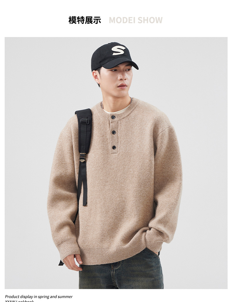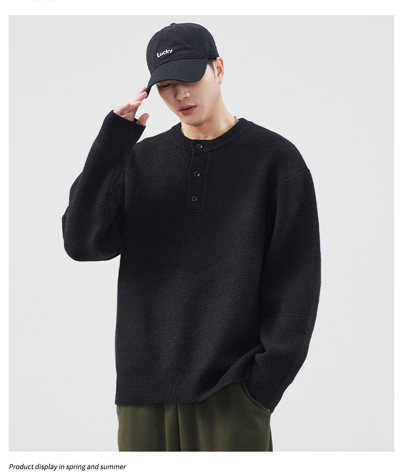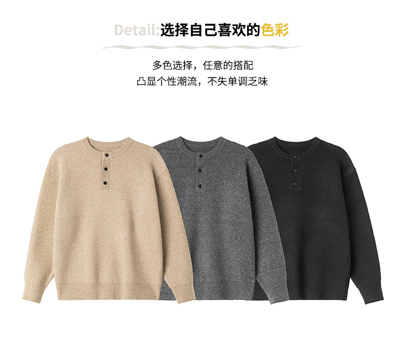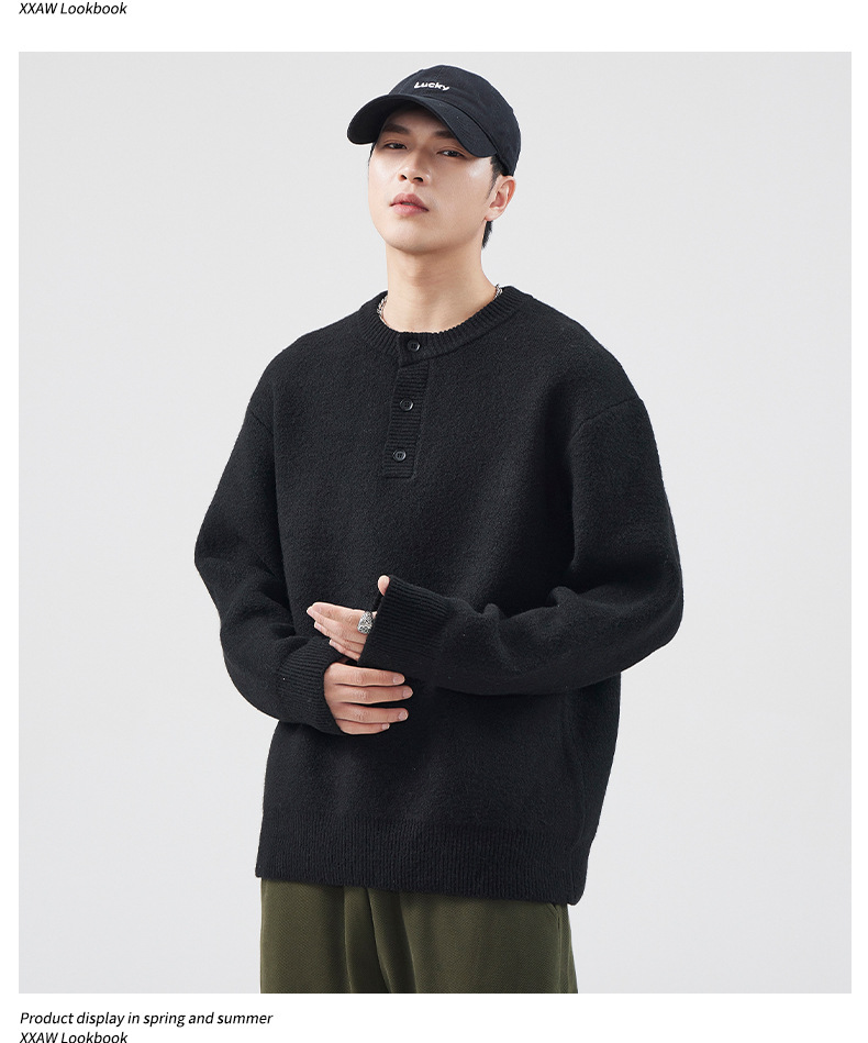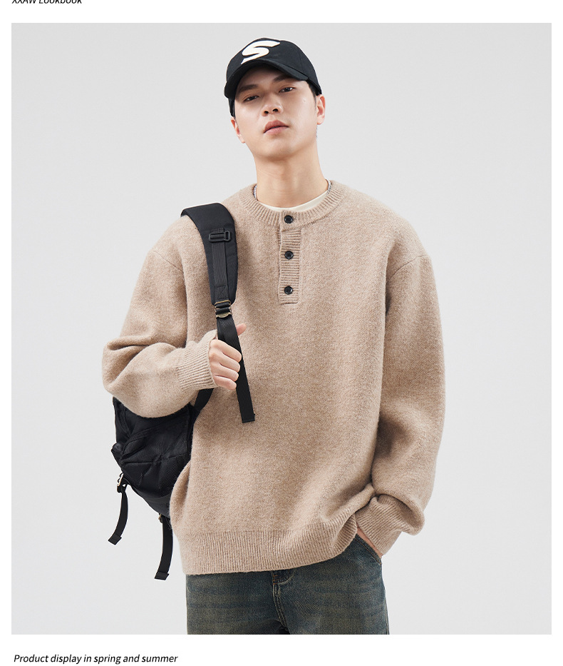 헨리 칼라 스웨터 코트 남자의 2024 새로운 가을과 겨울 느슨한 따뜻한 게으른 스타일 단색 회색 스웨터스토어 가기