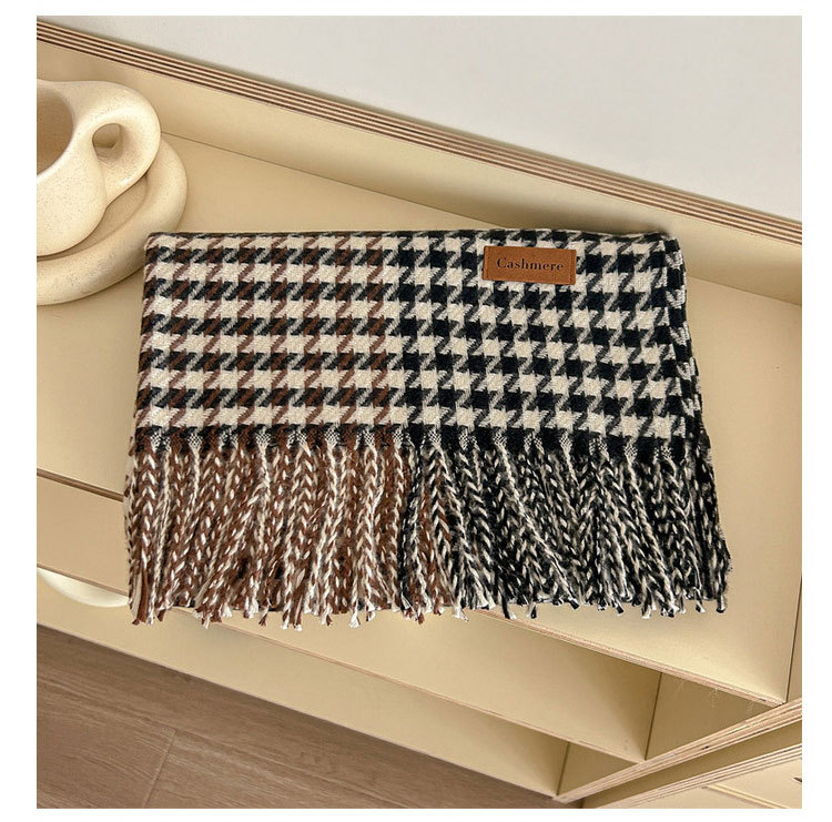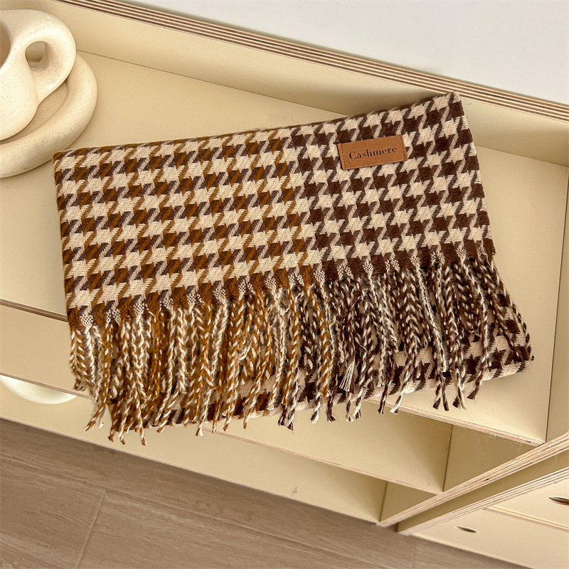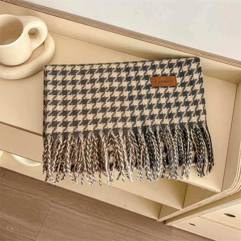 새로운 2 색 Houndstooth Tassel 스카프 여성의 겨울 하이 엔드 한국식 세련된 하이 퀄리티 두꺼운 따뜻한 목스토어 가기