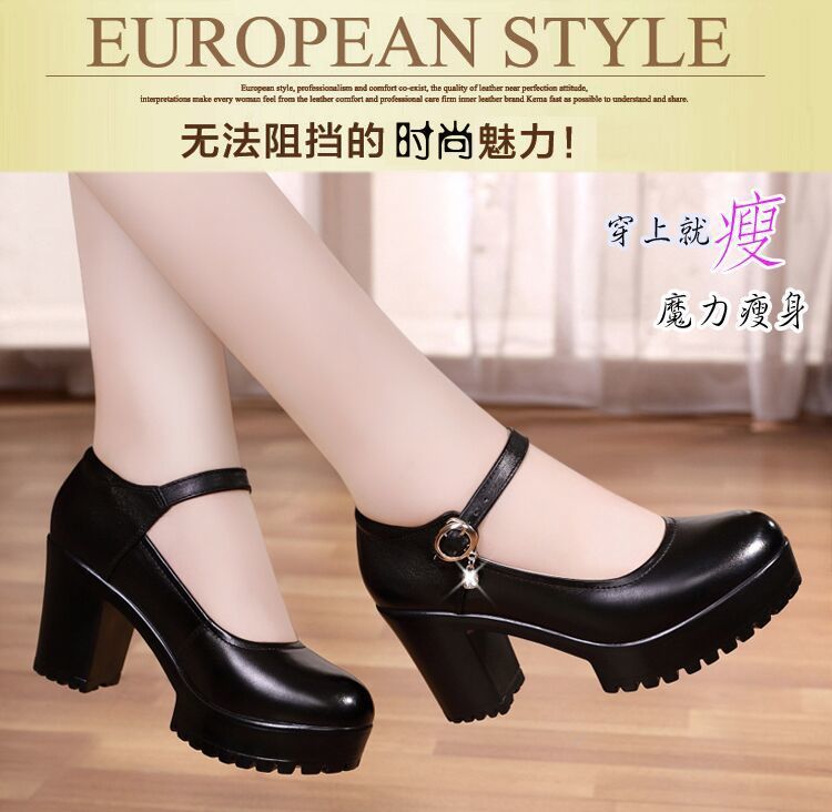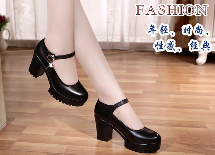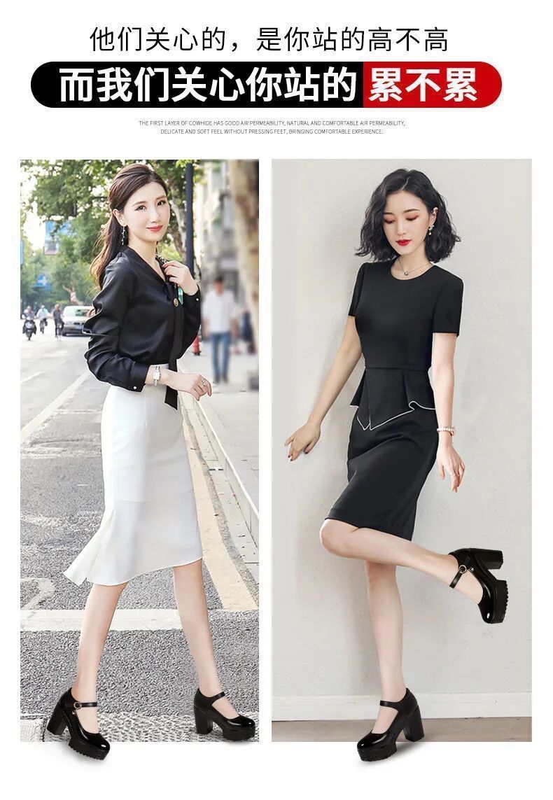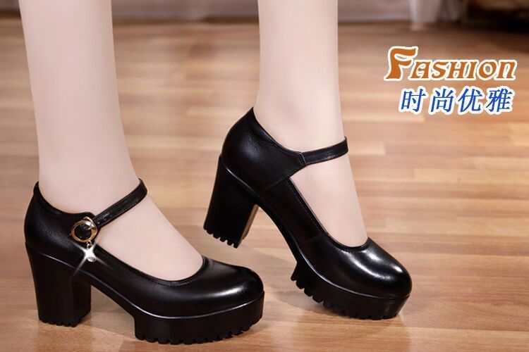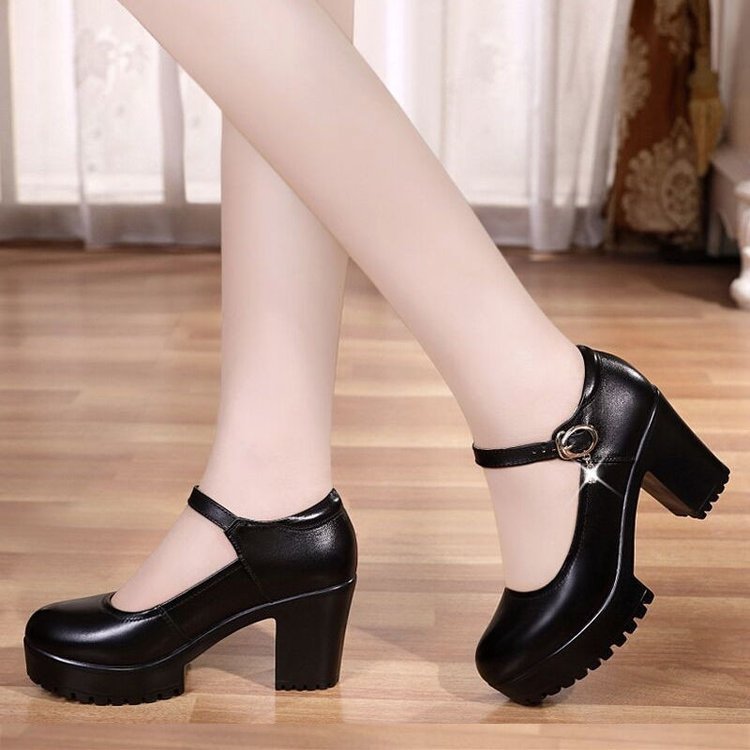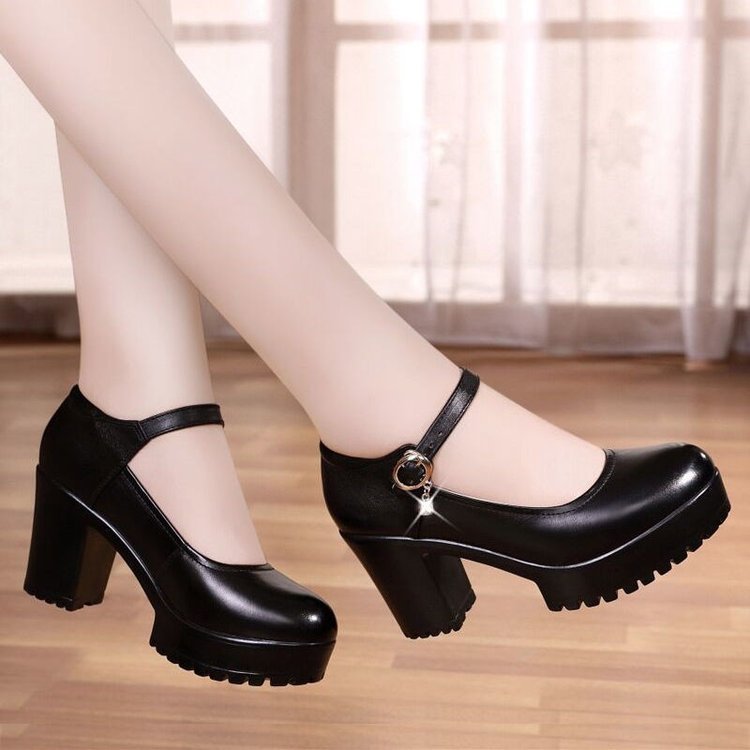 영국 스타일 두꺼운 하이힐 메리 제인 신발 라운드 발가락 가죽 신발 두꺼운 바닥 얕은 입 싱글 레이어 신발 2024 여성을위한 새로운 빈티지 하이힐스토어 가기
