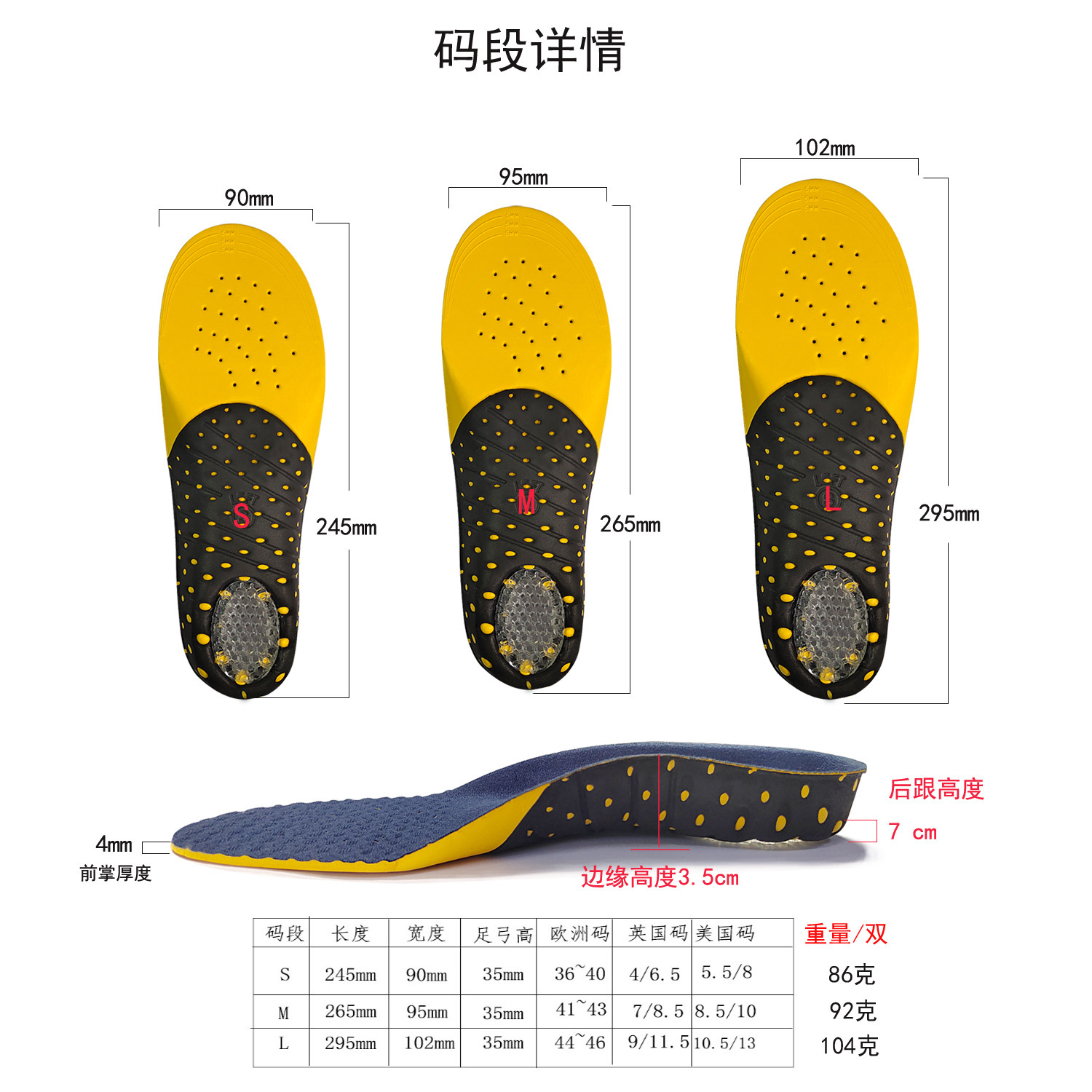 스포츠 깔창 아치 지원 충격 흡수 깔창 높은 탄성 EVA 통기성 마사지 보정 깔창 평면 발 교정