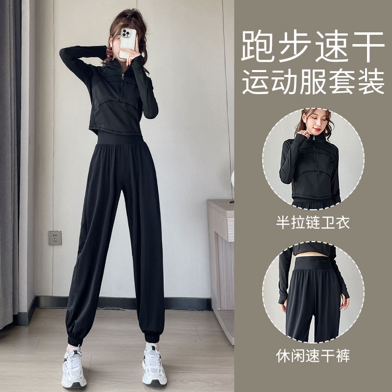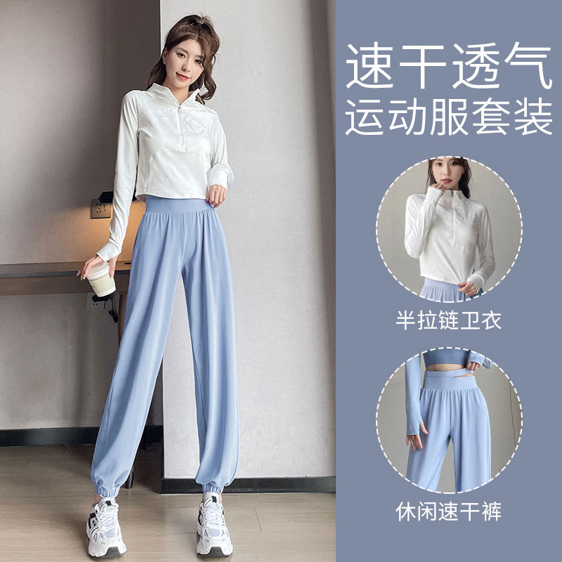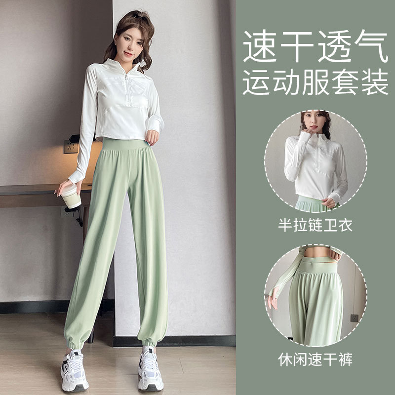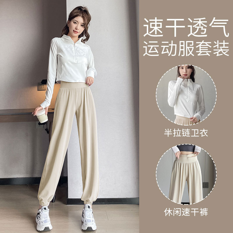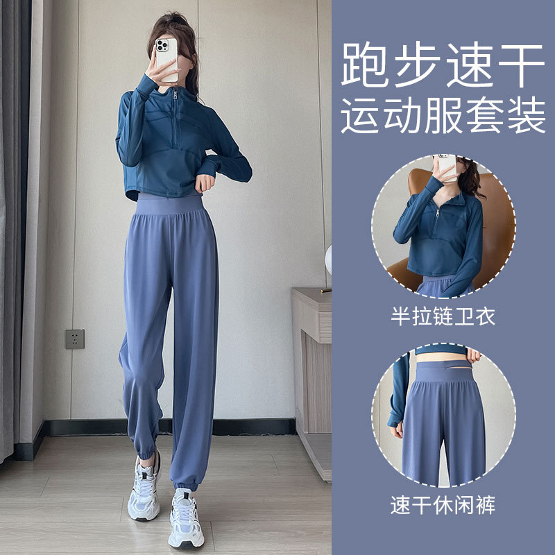 달리기 스포츠 세트 여성 봄과 가을 2024 새로운 승마 요가 옷 빠른 건조 레저 피트니스 바지 하이킹 등산 옷스토어 가기