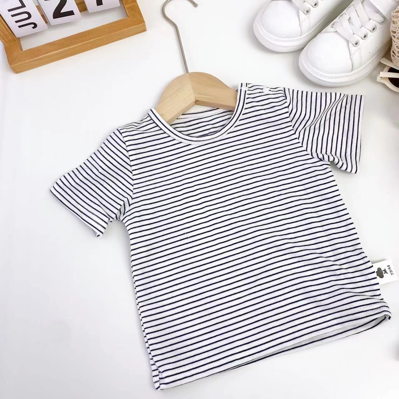 [재고 있음] WXT220022 아동용 반팔 2023 여름 신작 한국 스타일 외국 스타일 흑백 줄무늬 다용도