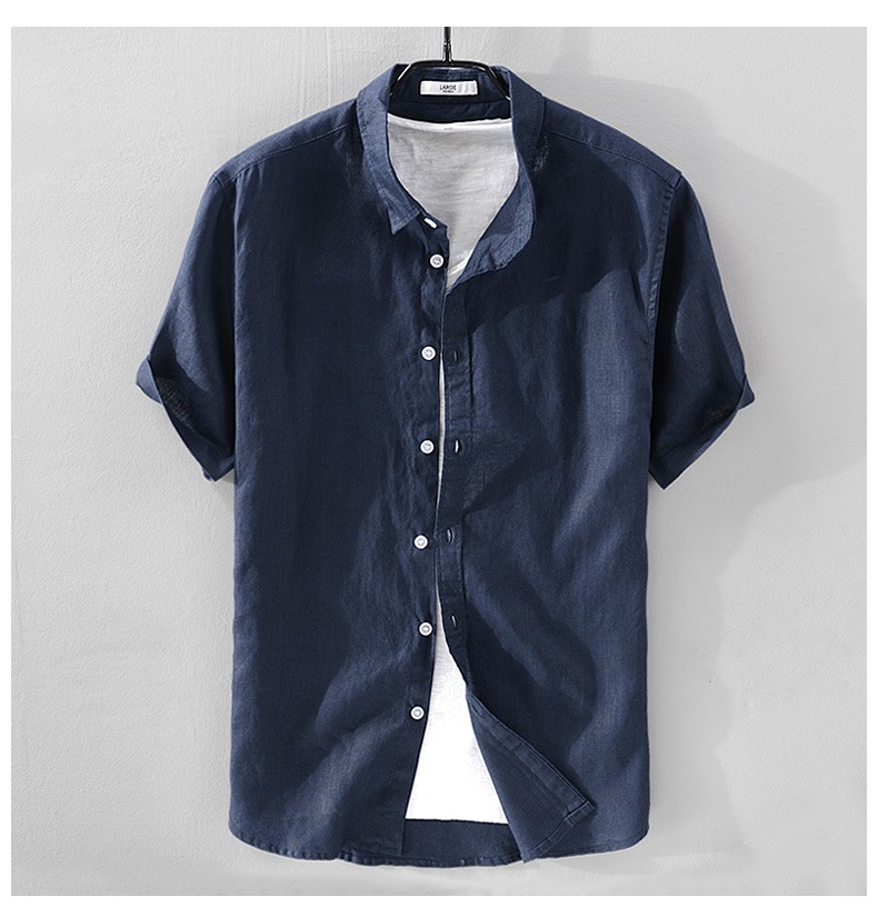 순수 리넨 반팔 셔츠 남성용 리넨 화이트 셔츠 코튼 리넨 남성용 남성 캐주얼 여름 옷 반소매