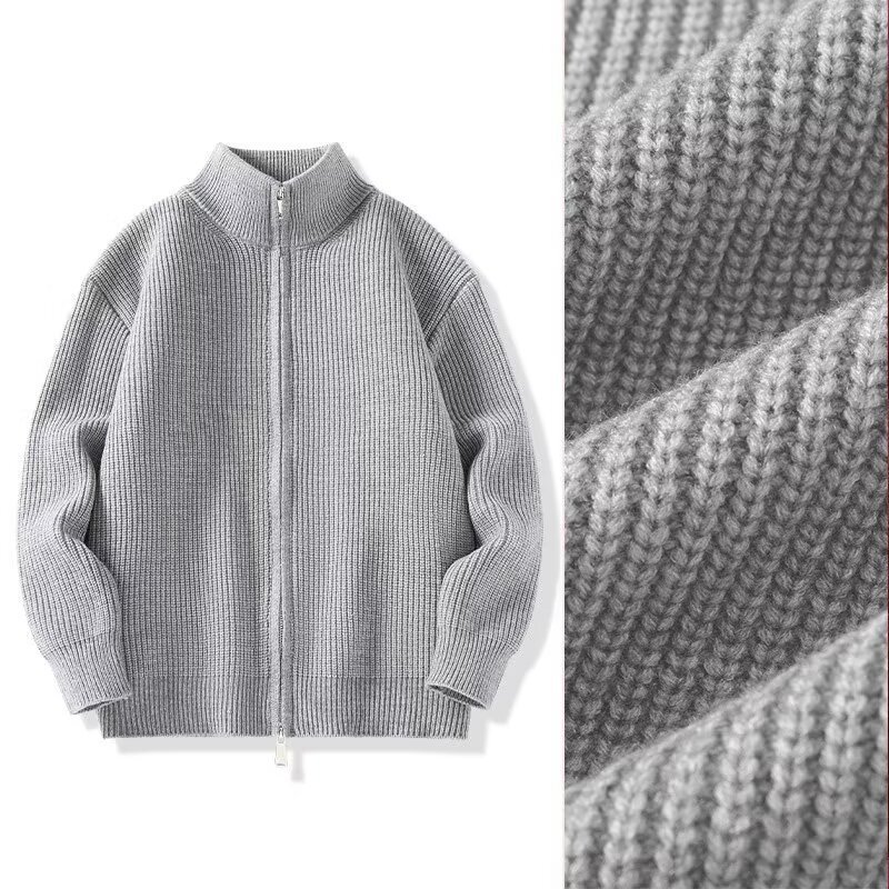 카디건 스웨터 남자 가을과 겨울 새로운 남자 내부 스웨터 그레이 칼라 지퍼 재킷 느슨한 스웨터