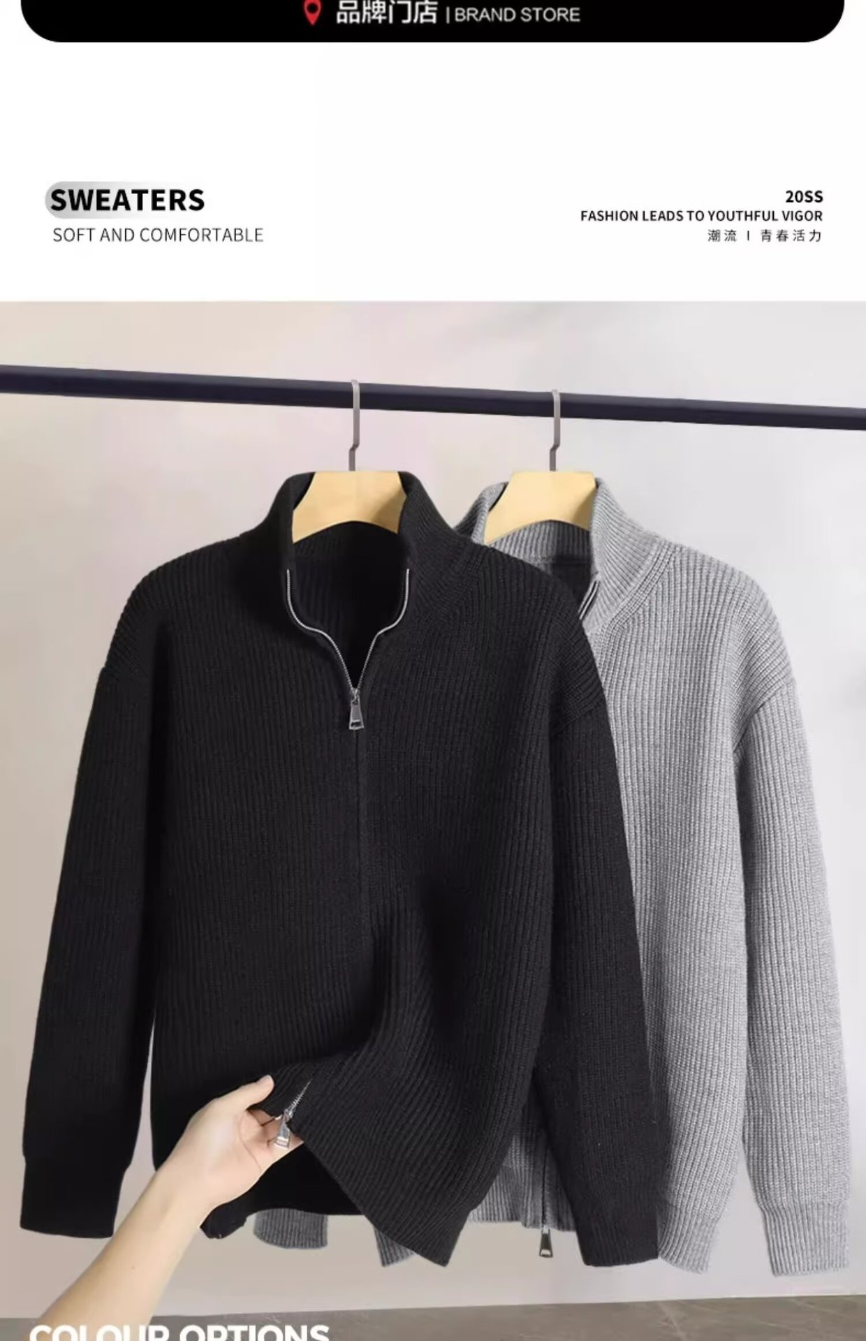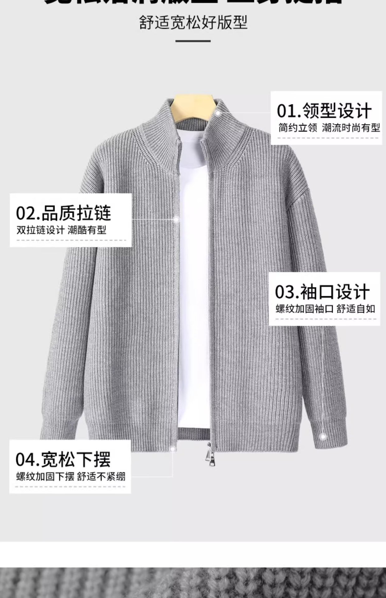 카디건 스웨터 남자 가을과 겨울 새로운 남자 내부 스웨터 그레이 칼라 지퍼 재킷 느슨한 스웨터스토어 가기