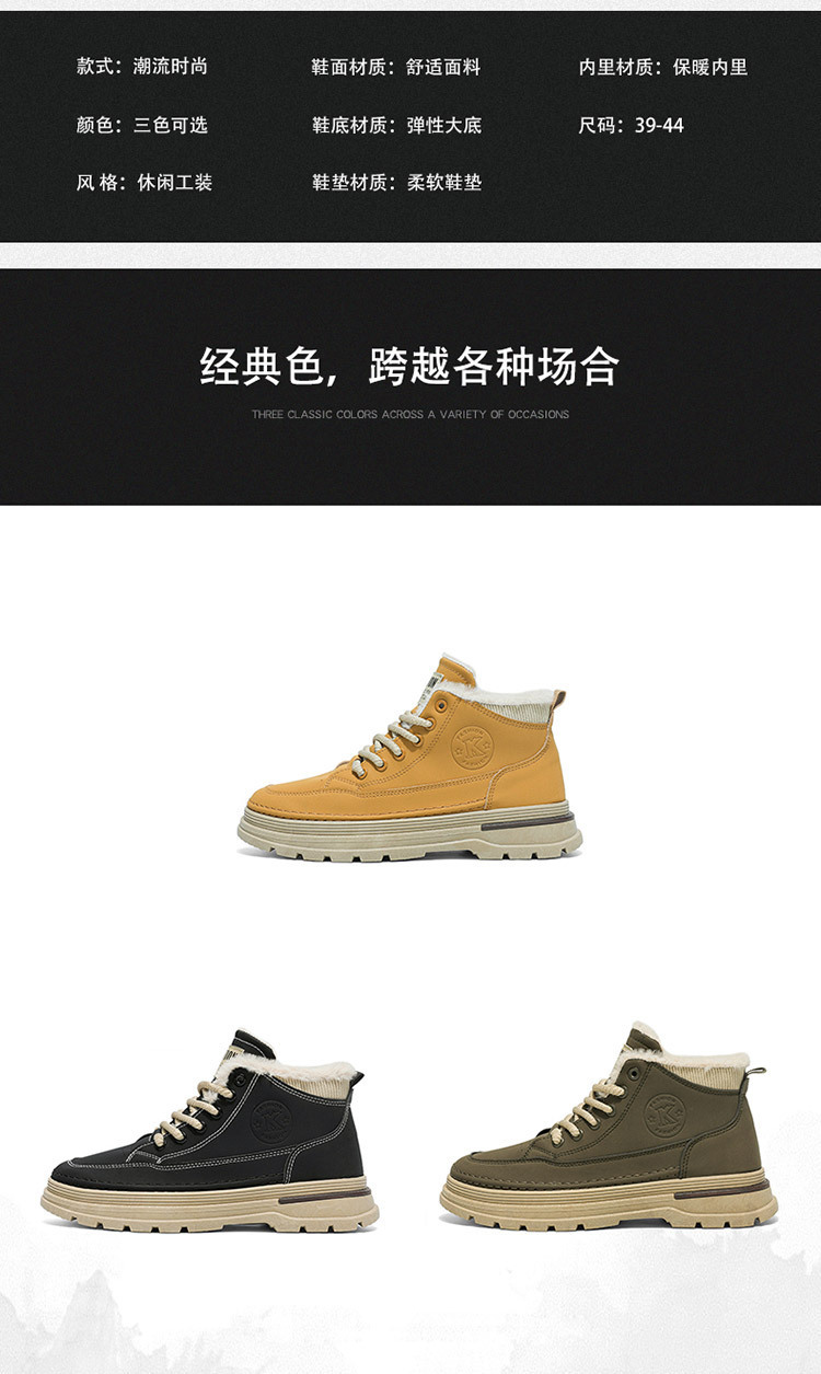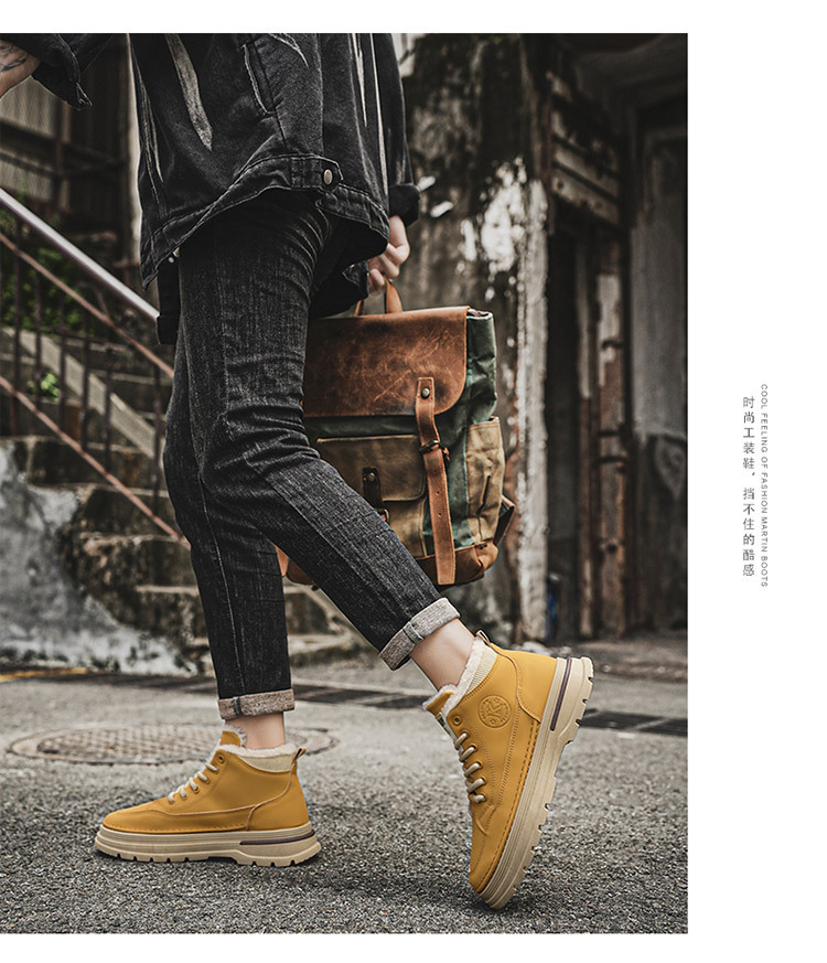 겨울 기모 마틴 부츠 남성용 트렌디 올매치 하이 탑 툴링 슈즈 두꺼운 코튼 패딩 슈즈 두꺼운 캐주얼 쇼트 부츠
