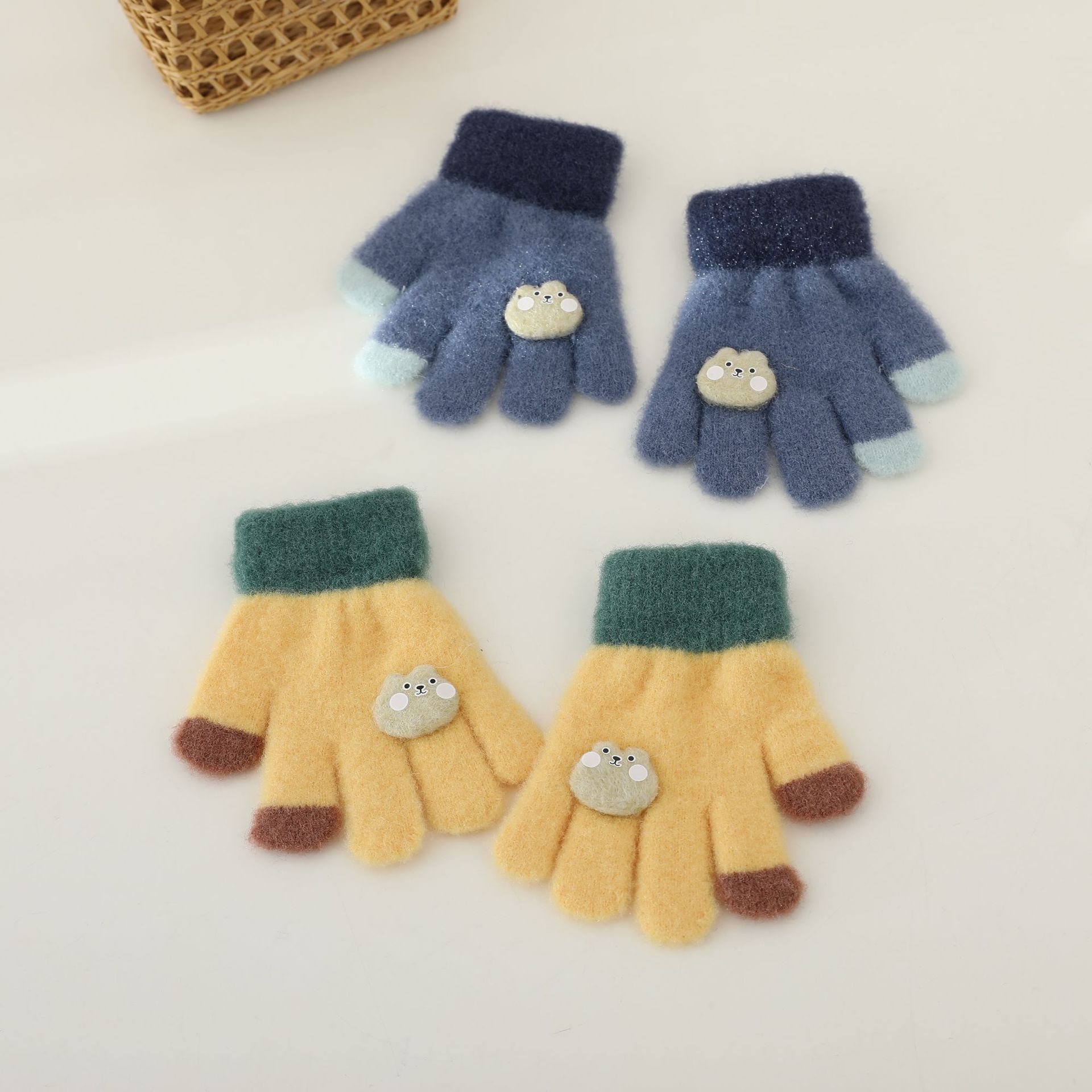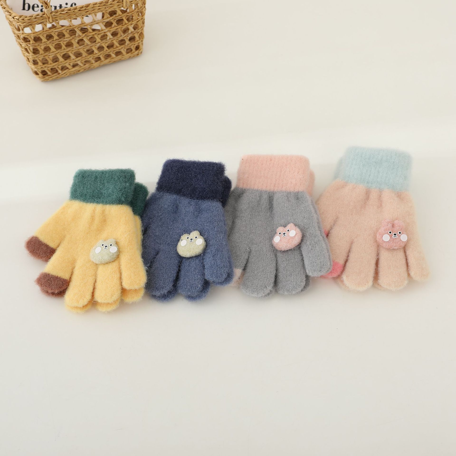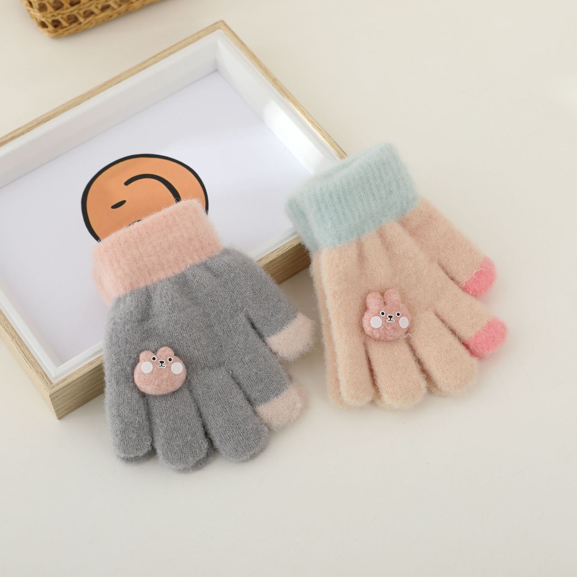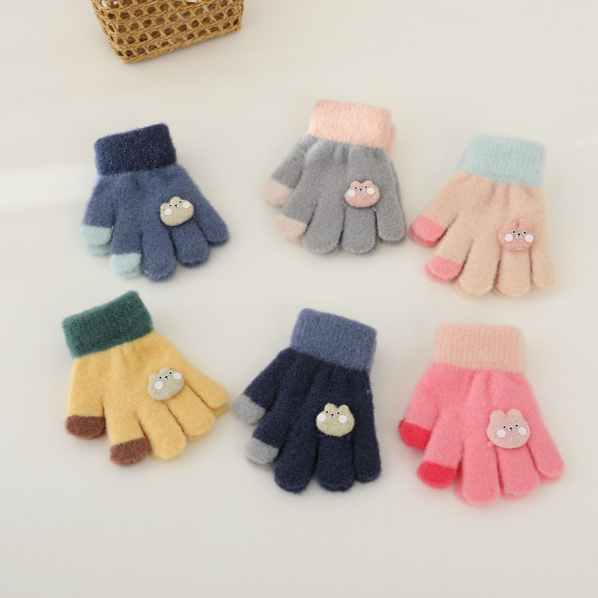 어린이 장갑 아기 소년과 소녀 가을과 겨울 손가락 장갑 두꺼운 따뜻한 아기 감기 방지 만화 귀여운 장갑