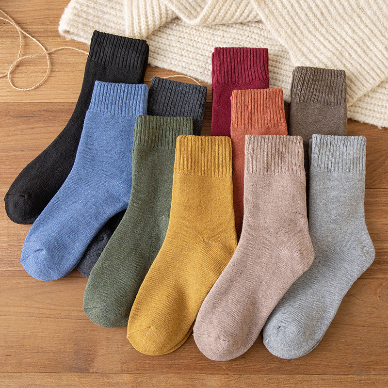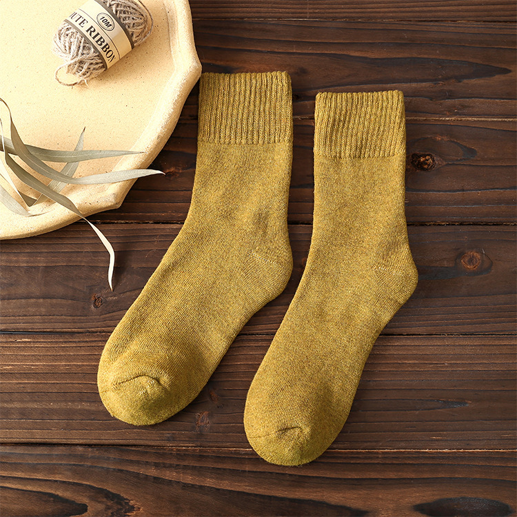 여성용 양말 미드 튜브 스타킹 가을과 겨울 테리 기모 두꺼운 단색 여성용 양모 양말스토어 가기