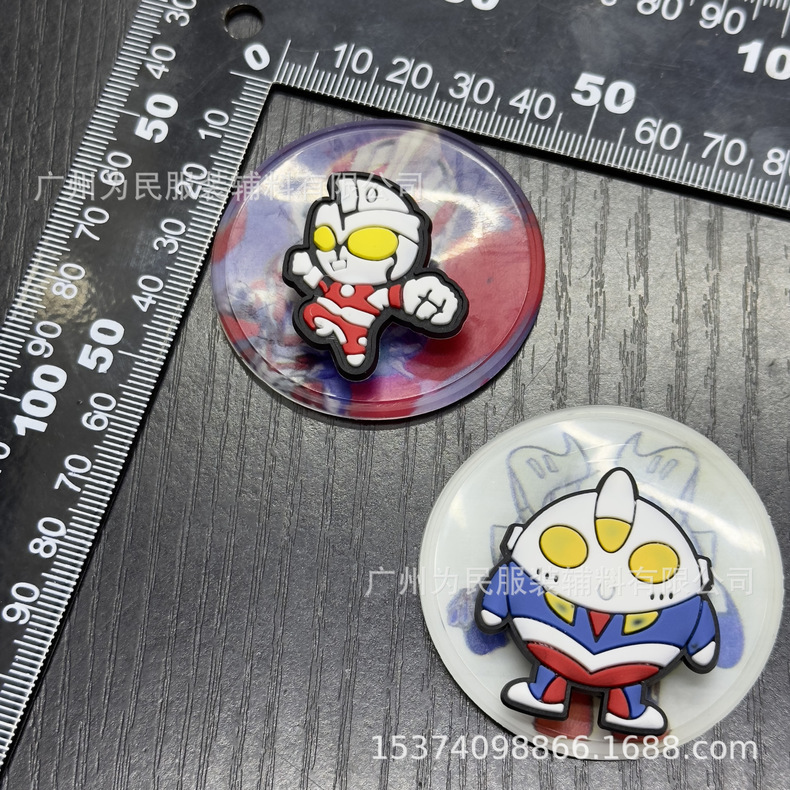 패션 선택 의류 액세서리 귀여운 Ultraman 턴 음악 컬러 인쇄 드롭 플라스틱 부드러운 고무 라운드 패션 회전 사인