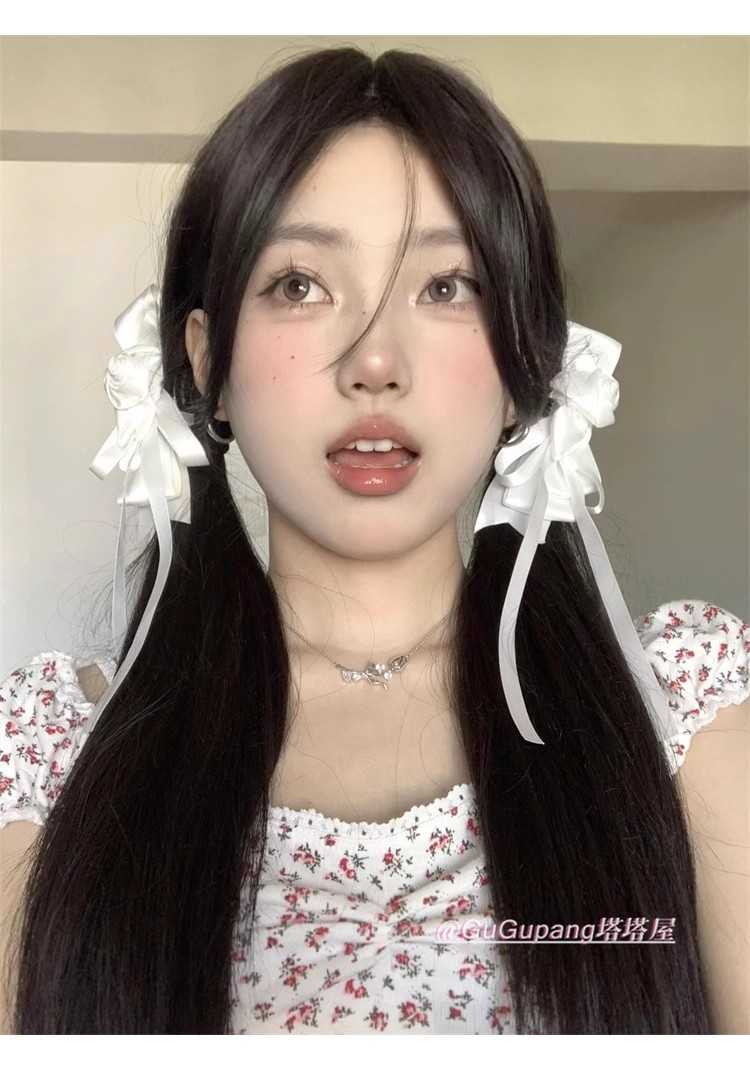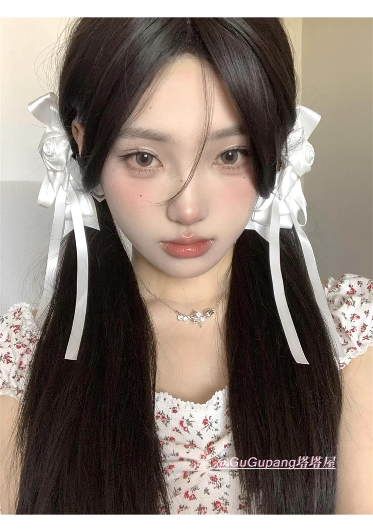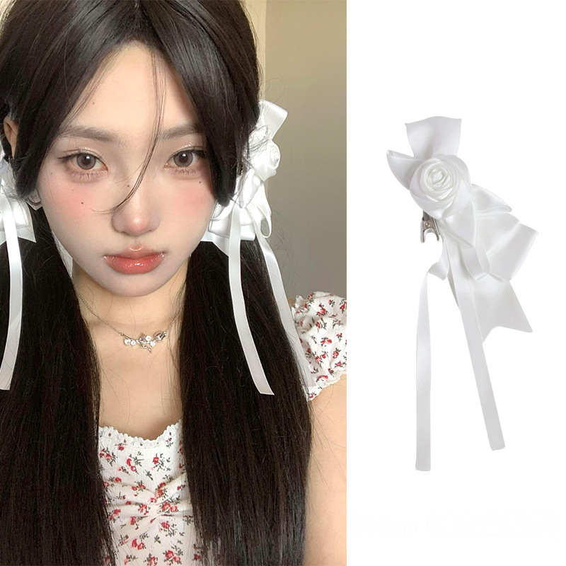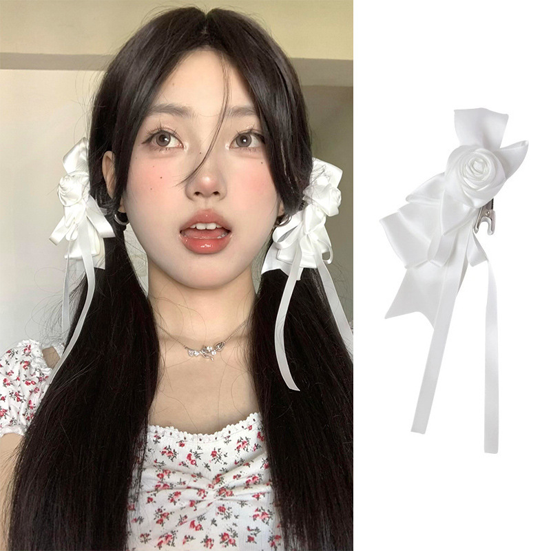 우아한 달콤한 화이트 활 꽃 머리핀 모리 스타일 수제 로즈 더블 포니 테일 더블 클립 로리타 헤어 액세서리