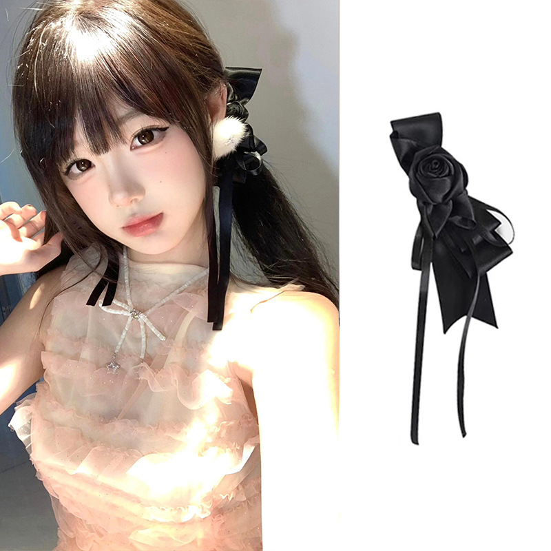• [왼쪽 싱글] 블랙 리본 플라워 헤어핀