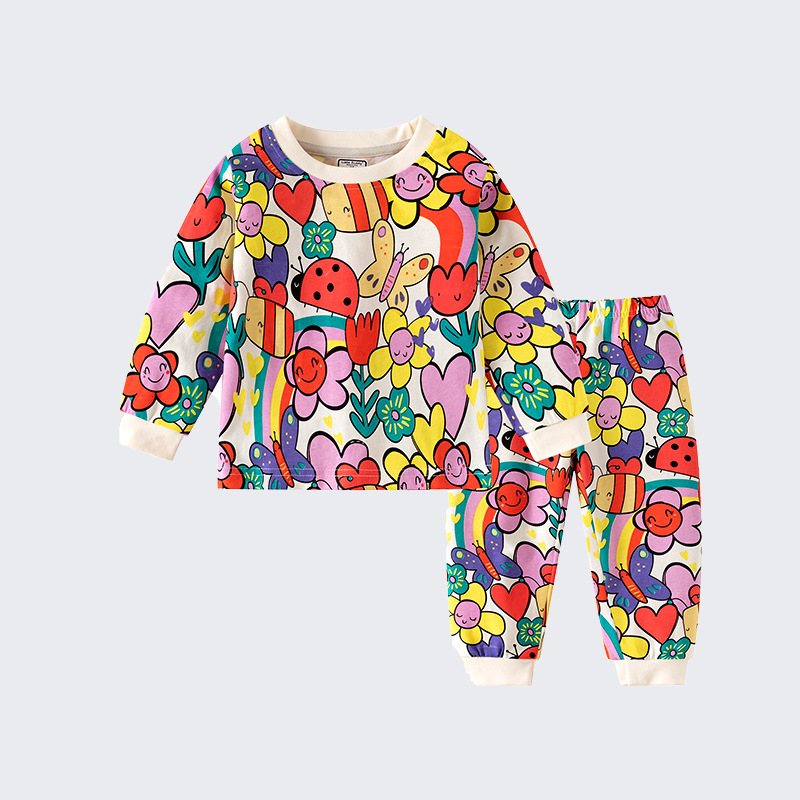 2-7세 여아용 크로스보더 긴팔 홈웨어 잠옷, 신상 봄가을 이너웨어 세트