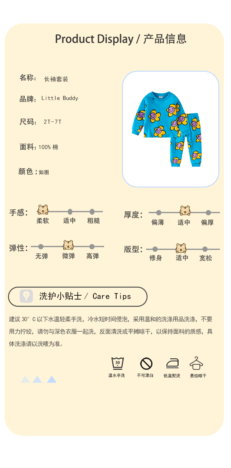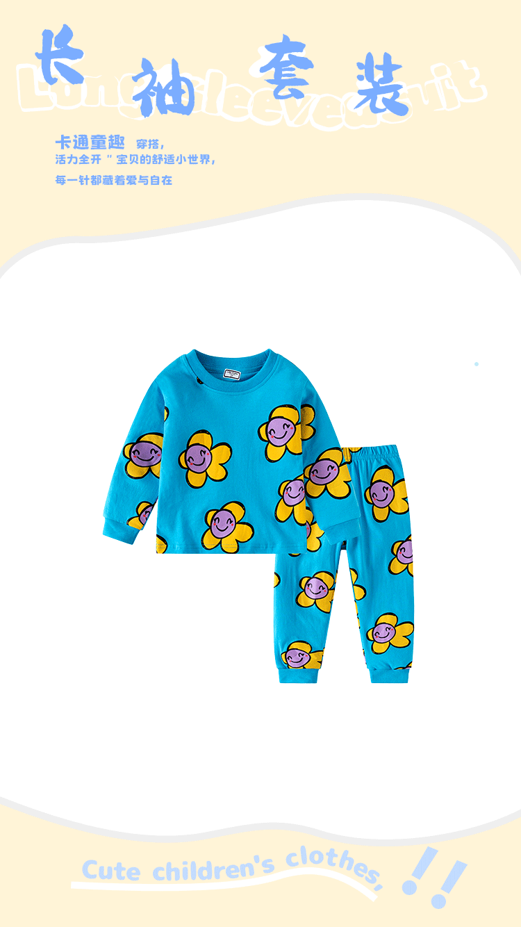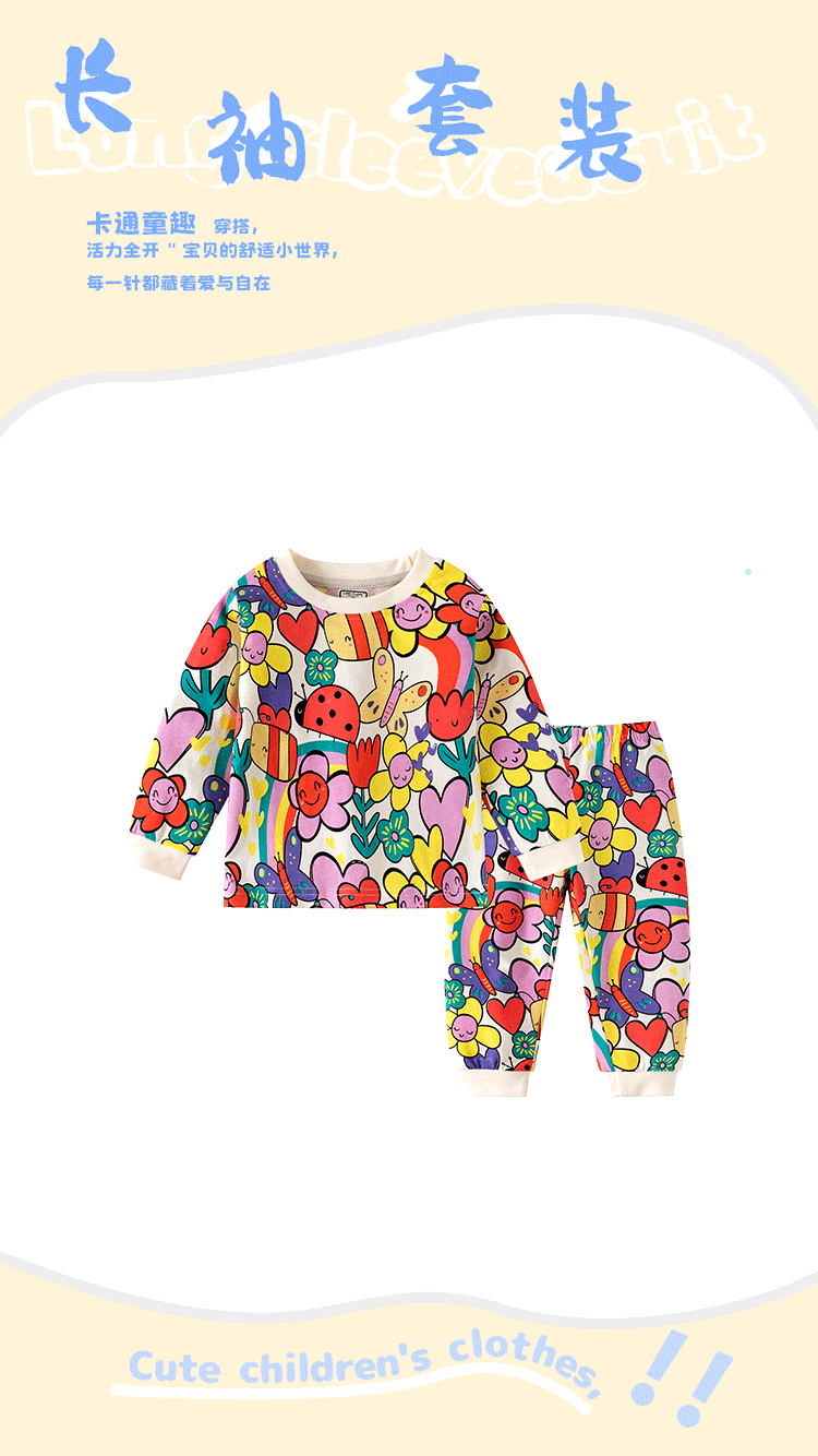 2-7세 여아용 크로스보더 긴팔 홈웨어 잠옷, 신상 봄가을 이너웨어 세트스토어 가기