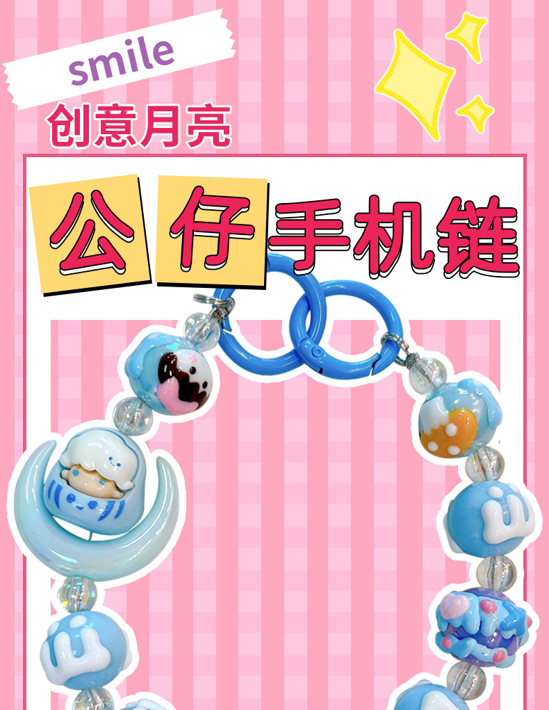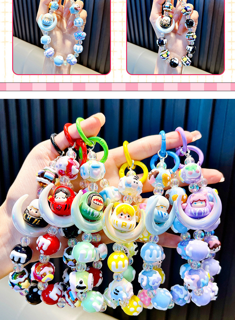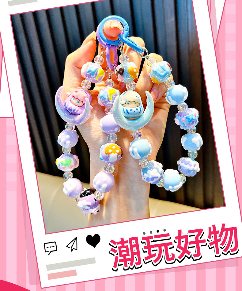구슬 달 휴대 전화 체인 키 체인 흔들어 음성 라이브 휴대 전화 펜던트 가방 액세서리 자동차 키 체인 작은 선물스토어 가기