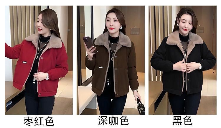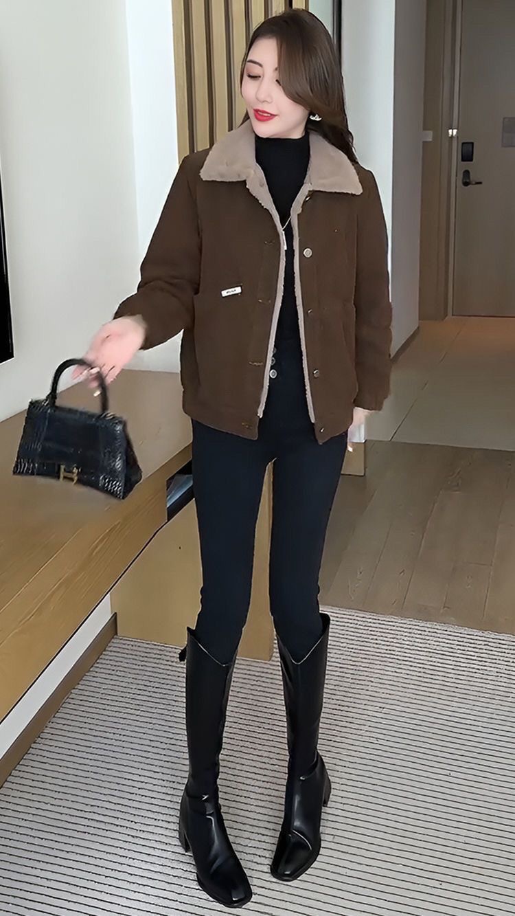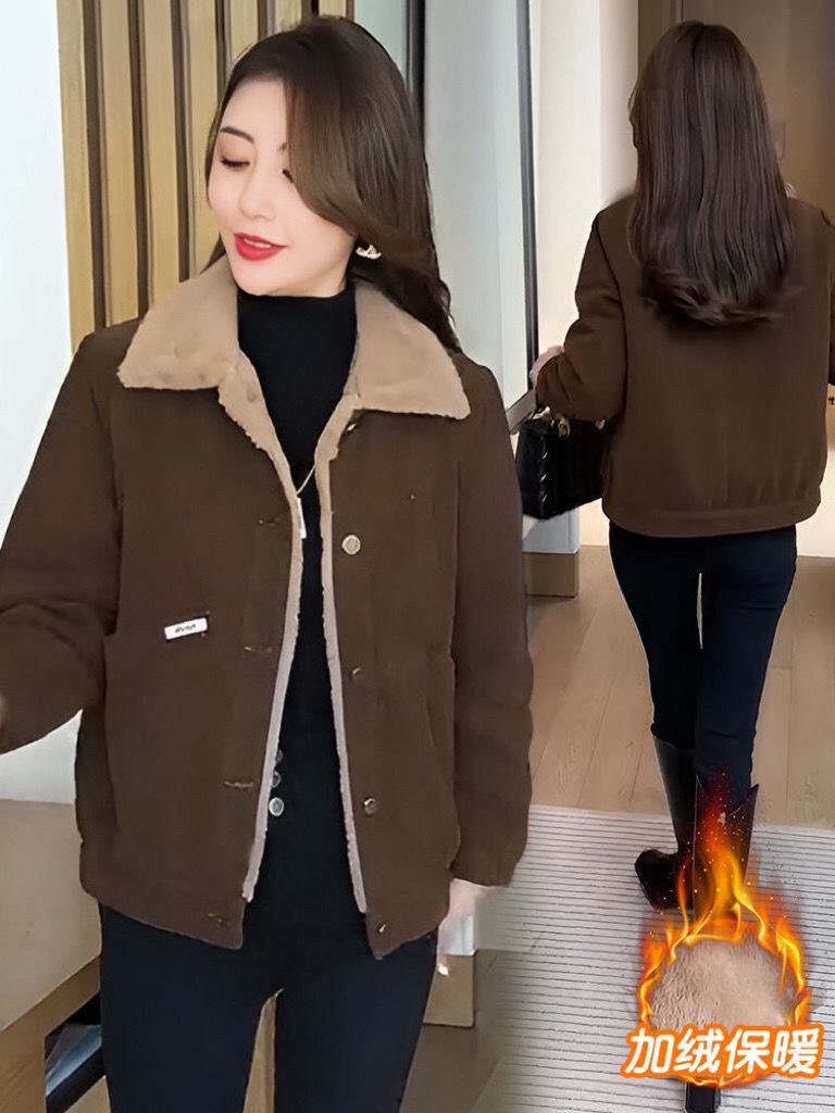 코듀로이 코트 2024 가을과 겨울 새로운 패션 올 매치 작은 느슨한 기모 따뜻한 재킷 탑 여성