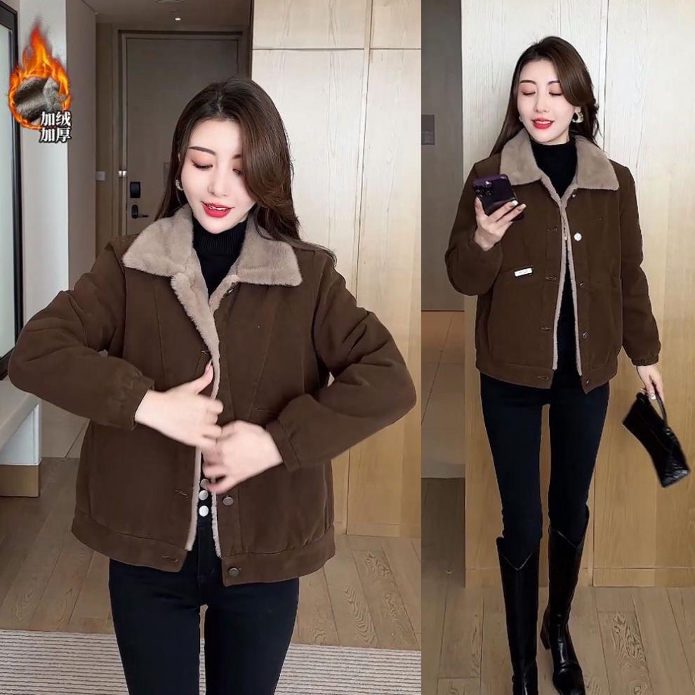 코듀로이 코트 2024 가을과 겨울 새로운 패션 올 매치 작은 느슨한 기모 따뜻한 재킷 탑 여성스토어 가기
